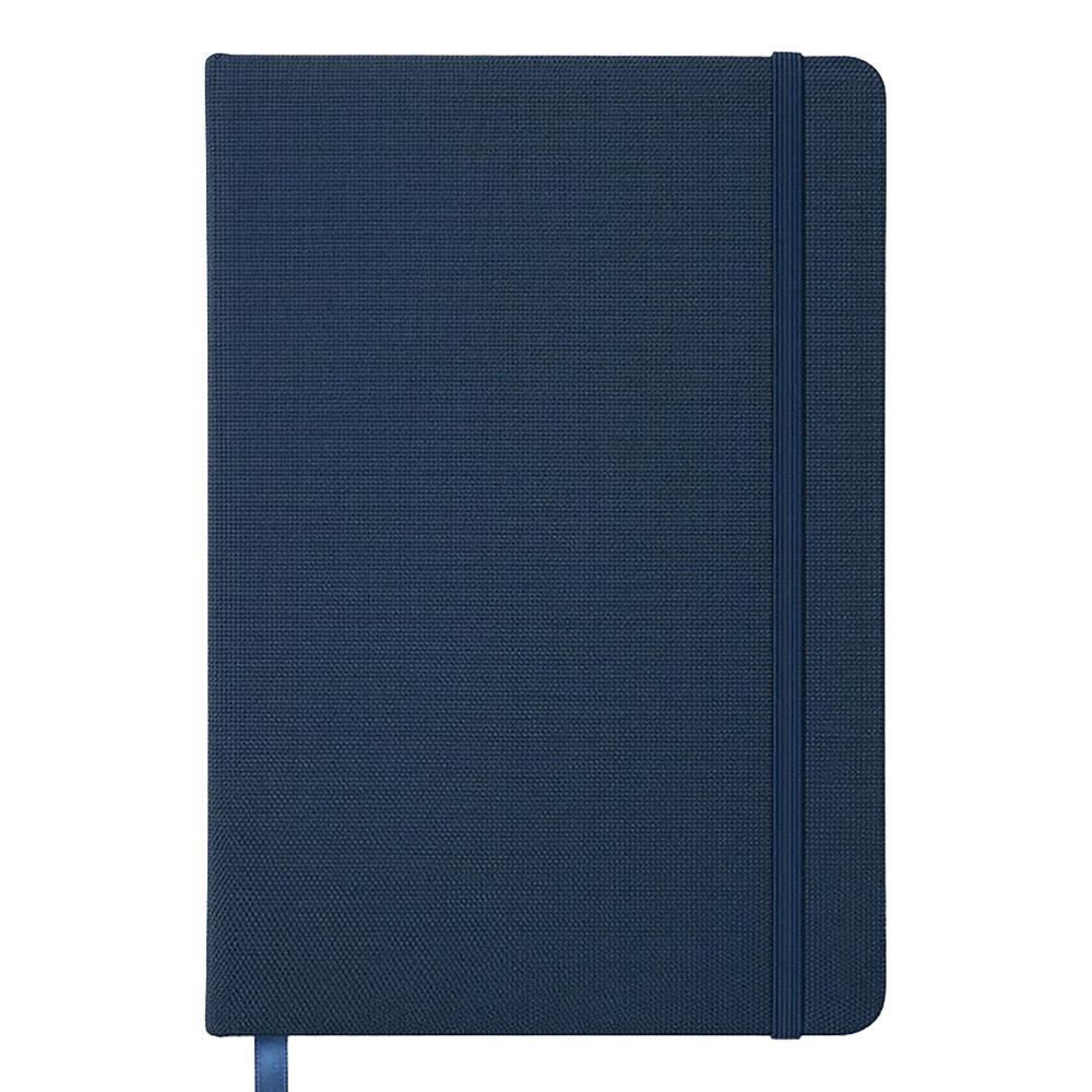 Cuaderno con tapa rígida de R-PET. Banda elástica de cierre y marcapáginas de cinta de satén