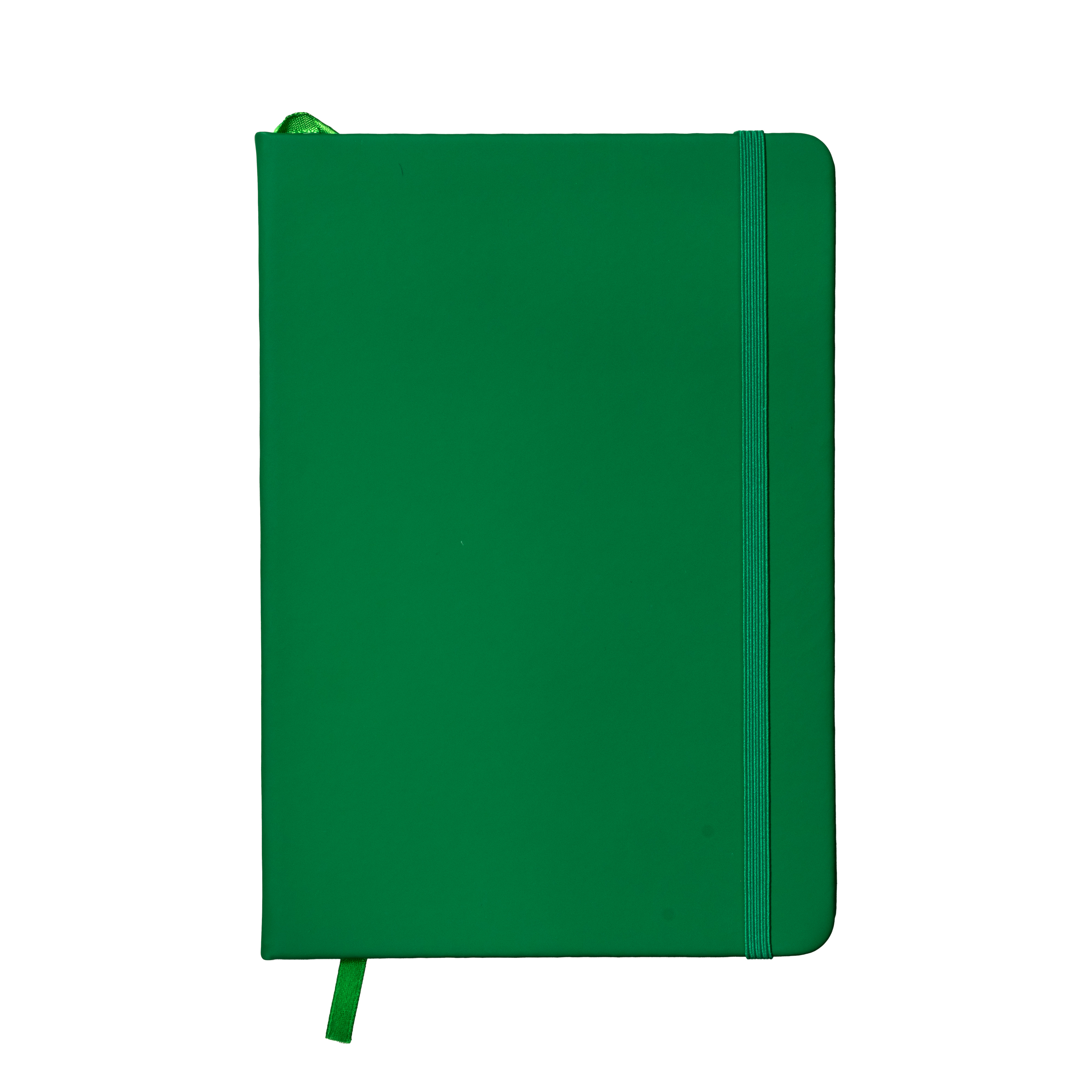 Cuaderno con cubierta de PU. Hojas punteadas en papel blanco (80 páginas), cierre elástico y marcapáginas de raso a juego