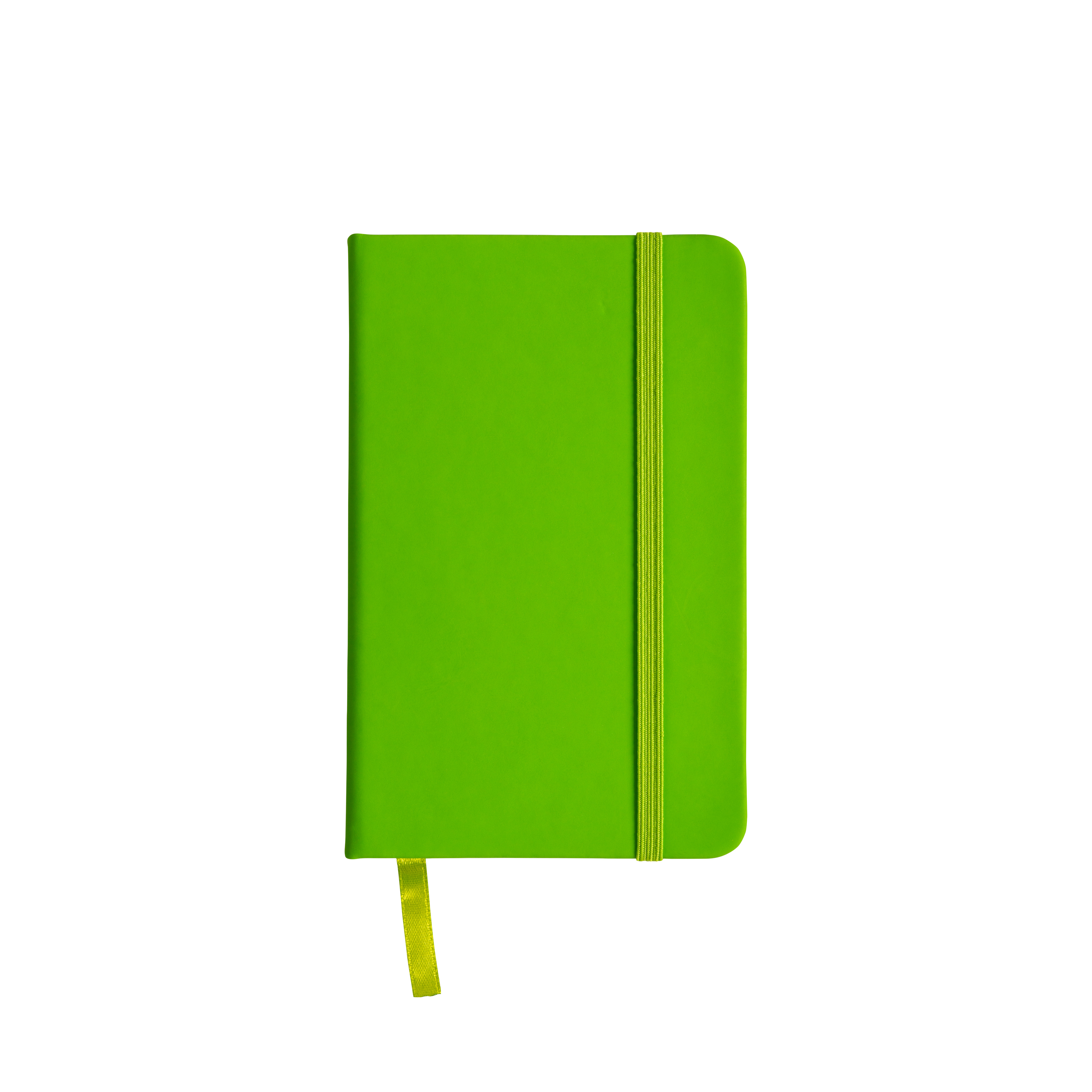 Libreta con tapas de polipiel y cierre goma. Medidas 9 x 14,8 cm.