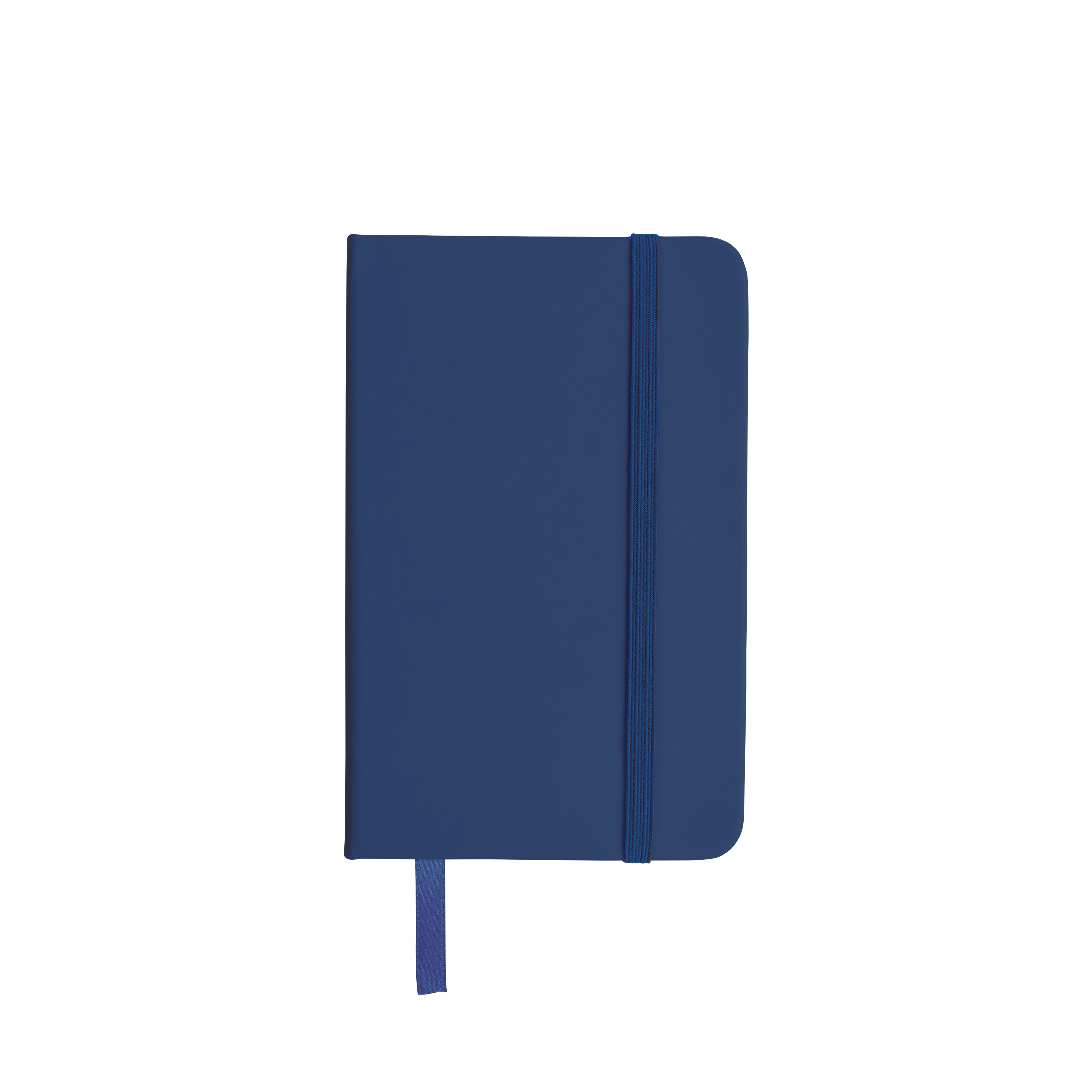 Libreta con tapas de polipiel y cierre goma. Medidas 9 x 14,8 cm.