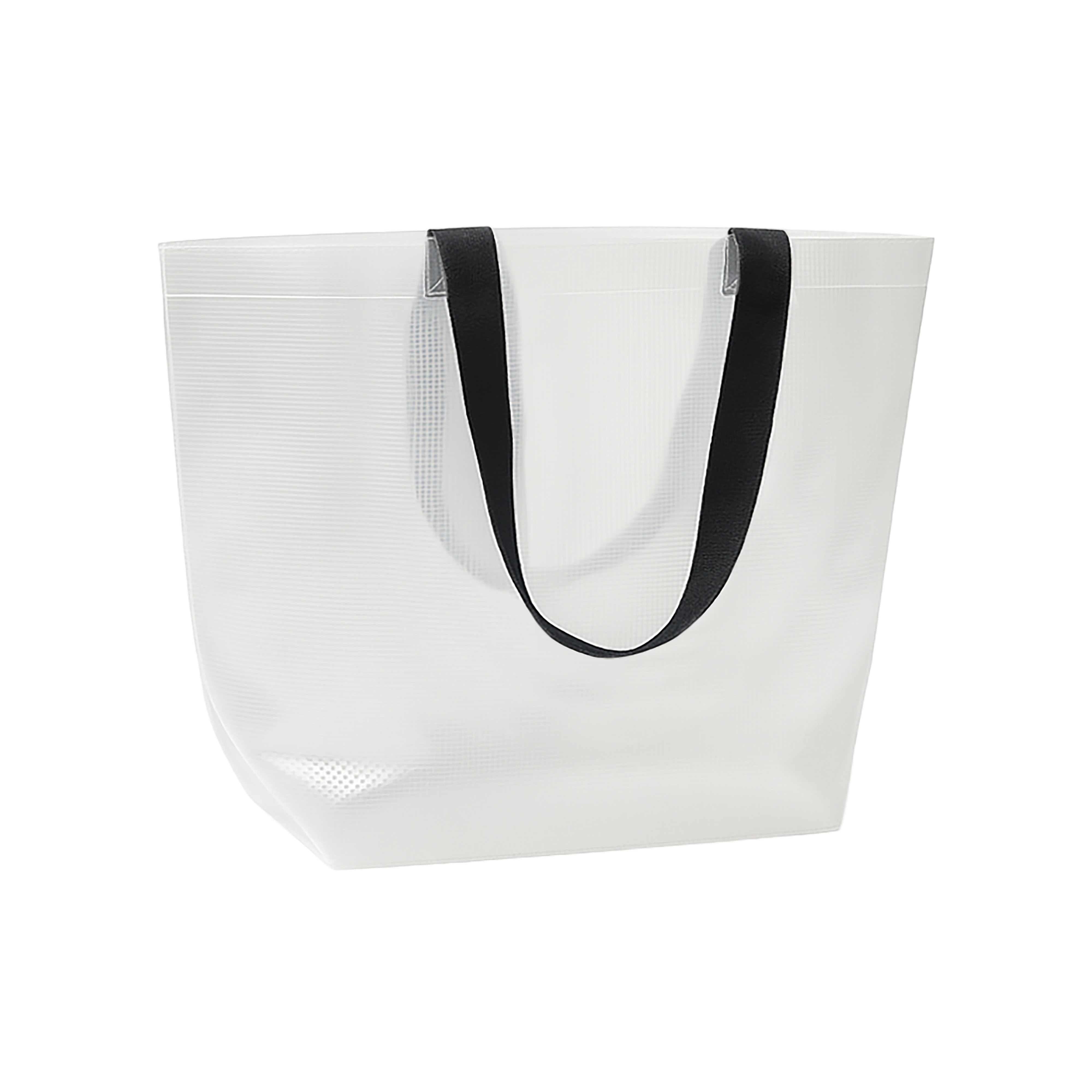 Bolsa shopper transparente en PP laminado 110 g/m2. Asas largas de poliester de color y fuelle