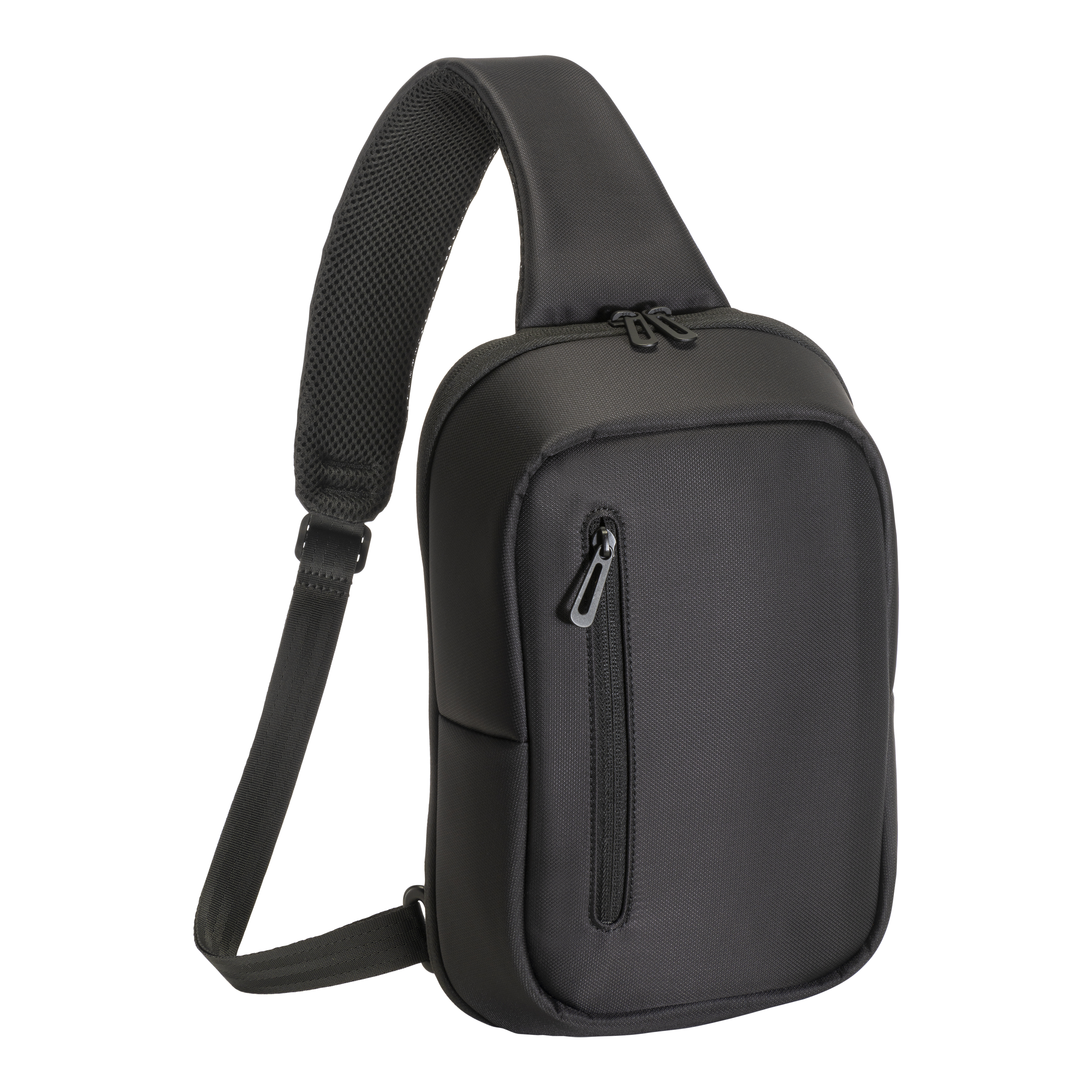 Riñonera fabricada en poliéster 210D. Bolsillo frontal con cremallera y gran compartimento interior. Bandolera ajustable y espalda acolchada con material transpirabl