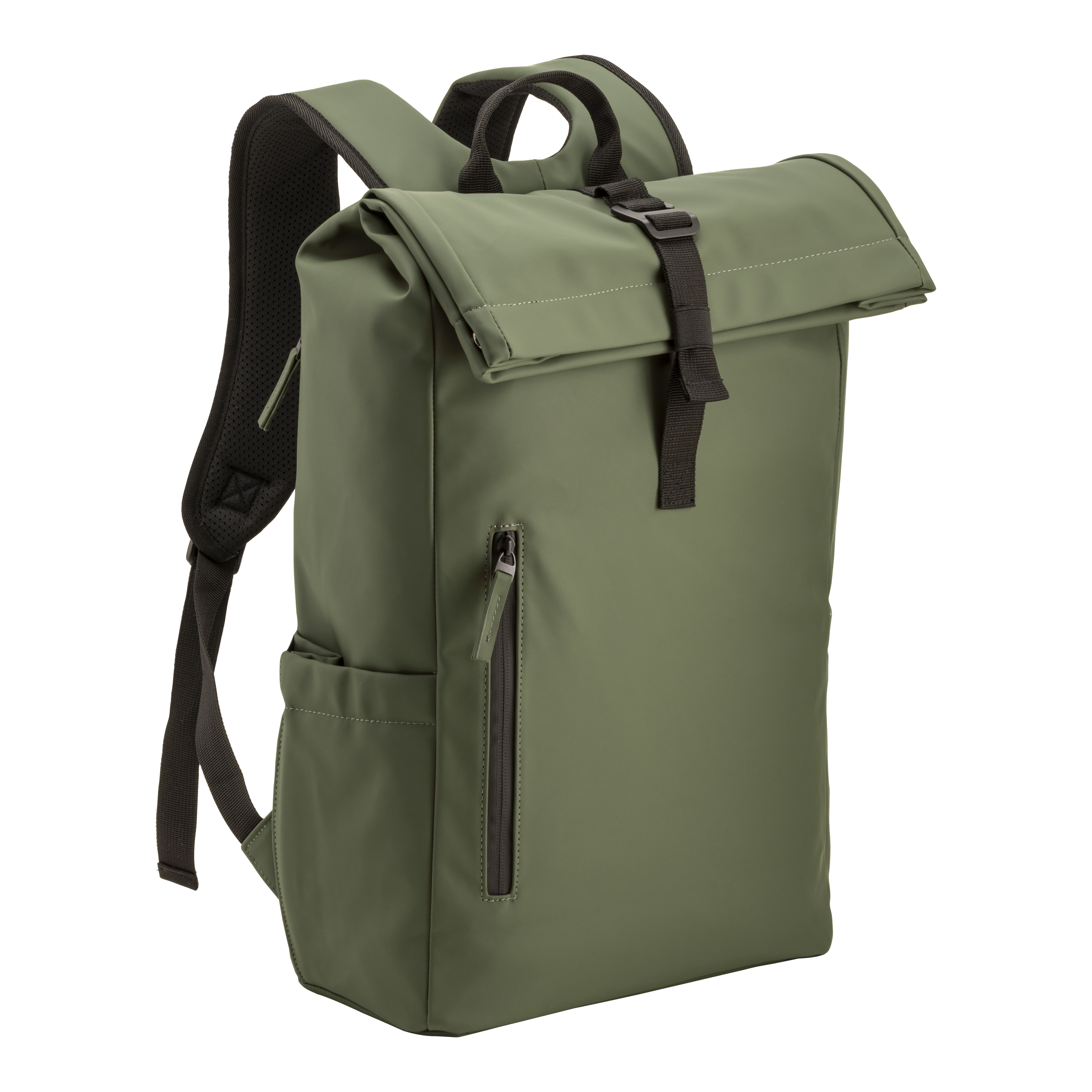Mochila para portátil (15) en suave PU resistente al agua. Bolsillo trasero acolchado para el notebook. Amplio compartimento principal, bolsillo frontal con cremallera y bolsillos exteriores para botellas. Espalda y correas acolchadas con material transpirable