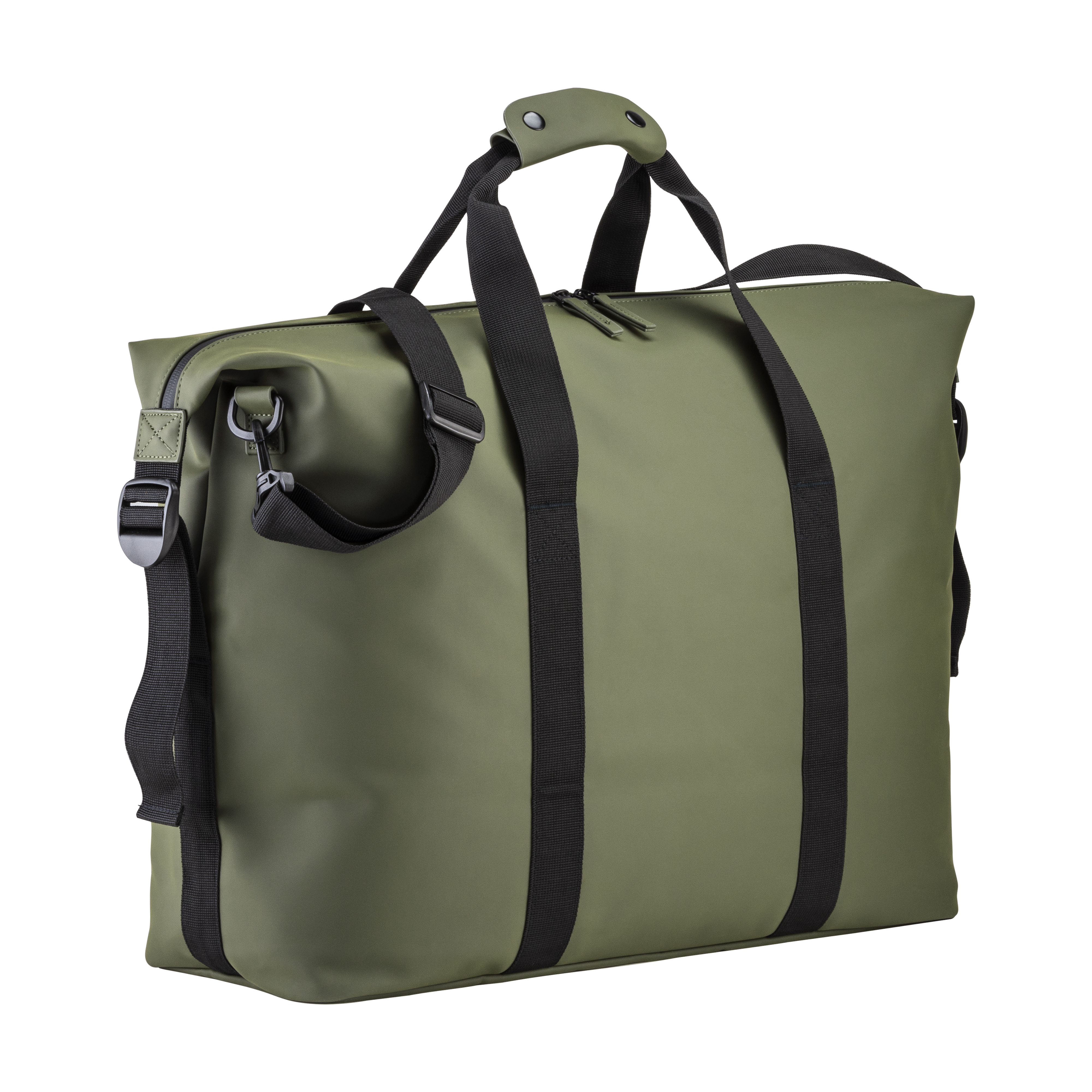 Bolsa de viaje de PU suave e impermeable. Amplio compartimento principal con cremallera impermeable. Bolsillo interior con cremallera. Correa de hombro ajustable y extraíble con hebilla metálica