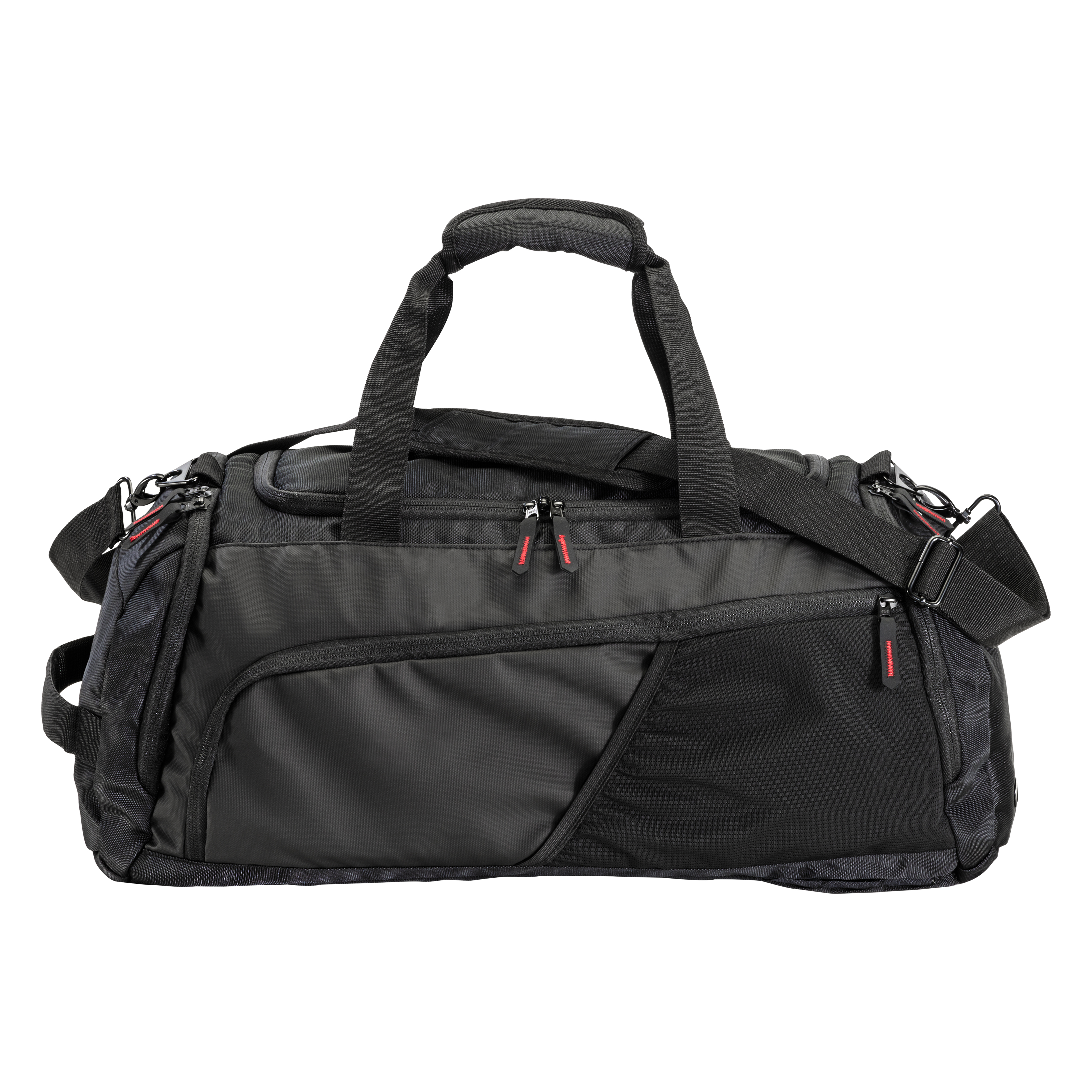 Bolso/mochila de poliéster reciclado (R-PET) con amplio compartimento de apertura con cremallera, un compartimento para zapatos o ropa sucia, un bolsillo lateral con cremallera, bolsillo lateral para botella de malla. Correas ajustables y acolchadas.