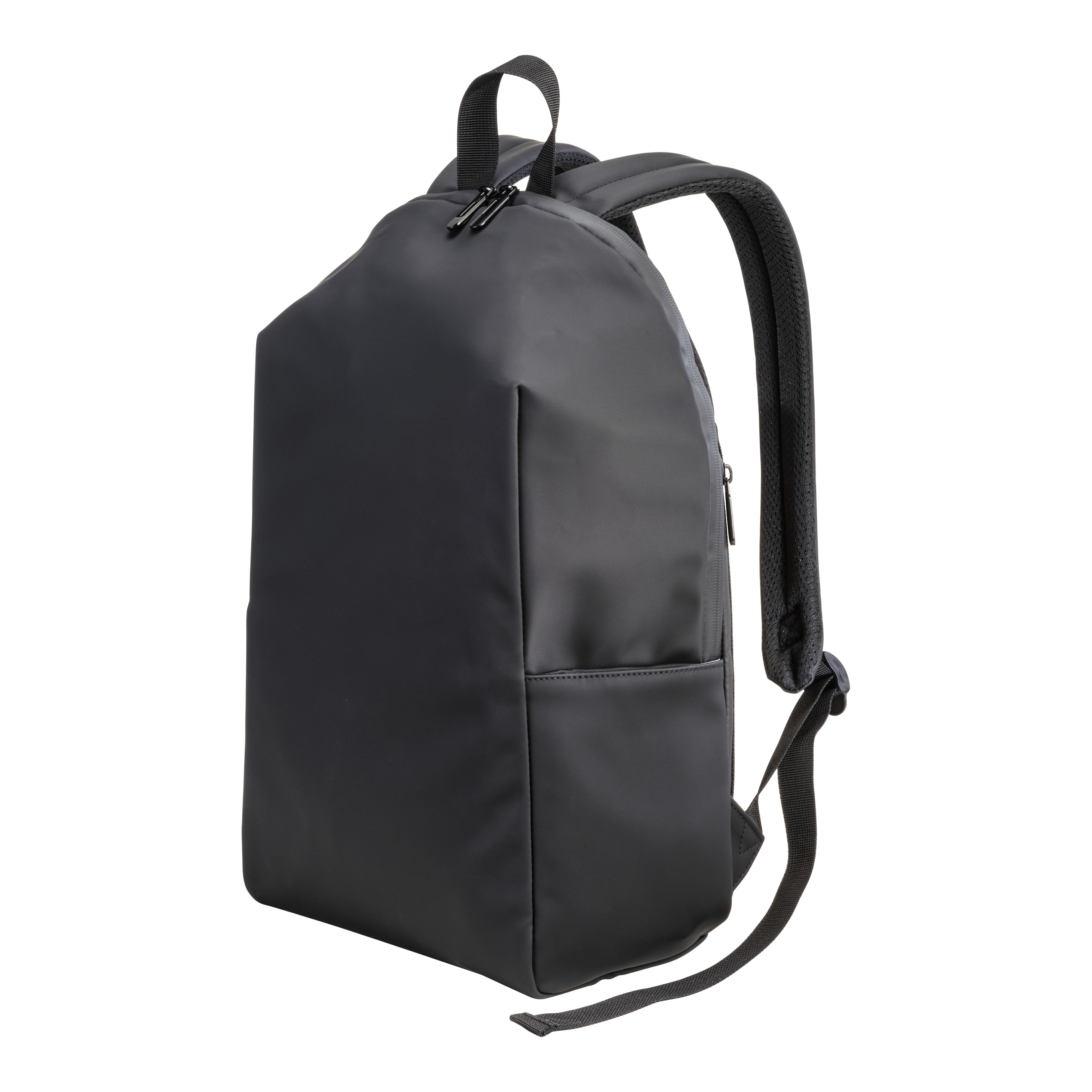 Mochila para PC de Soft PU water resistant. Compartimento acolchado para portatil. Respaldo y tirantes acolchados con material transpirable. Bolsillos laterales para botellas. Bolsillo posterior antihurto