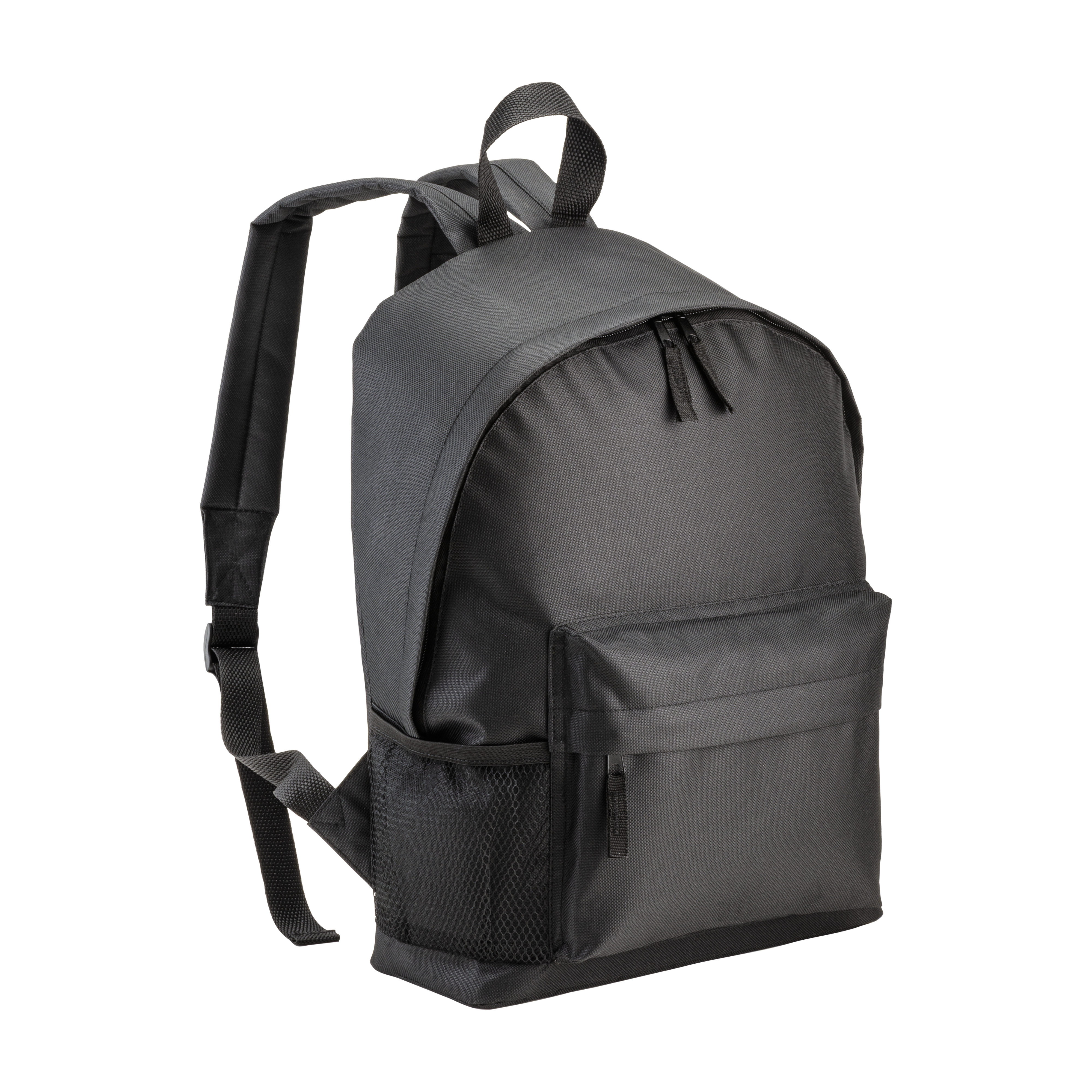 Mochila de poliéster reciclado R-PET con bolsillo exterior con cremallera. Respaldo acolchado, correas ajustables y bolsillos laterales para botellas