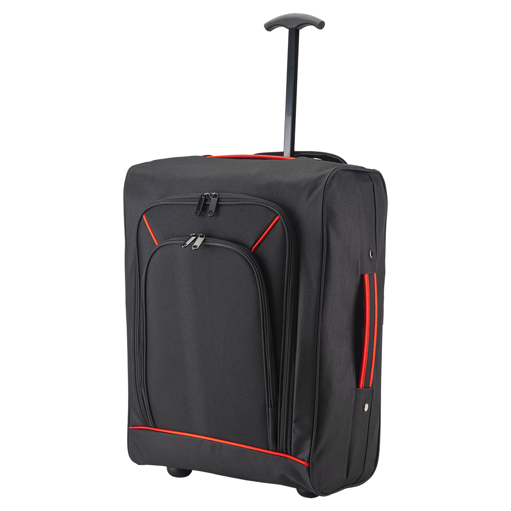 Trolley suave/maleta de viaje de poliéster 600D con detalles coloridos. Amplio compartimento interno, bolsillo frontal con cremallera y asa superior