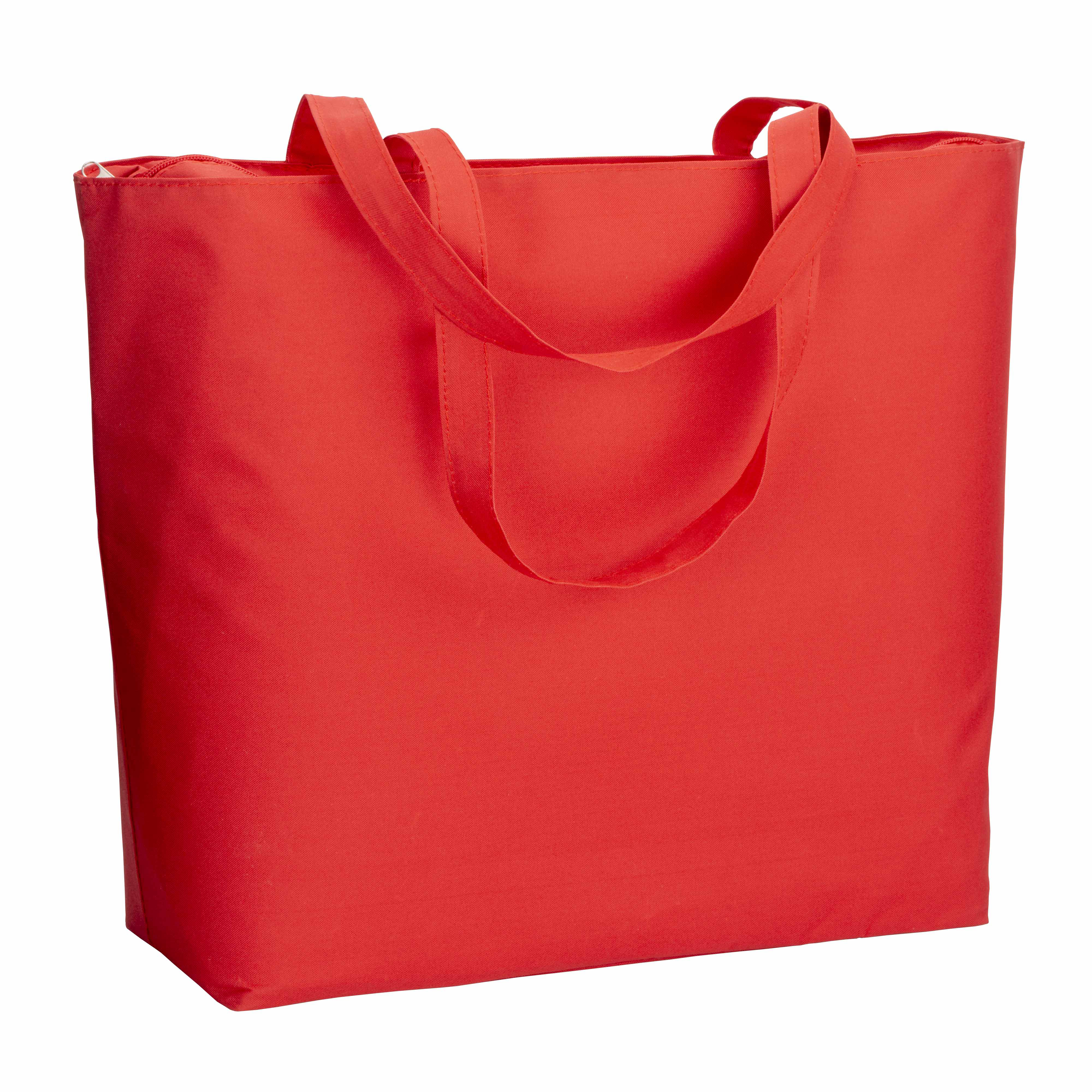 Bolso de playa en poliéster 300D con asas largas, cierre de cremallera y fuelle en la base