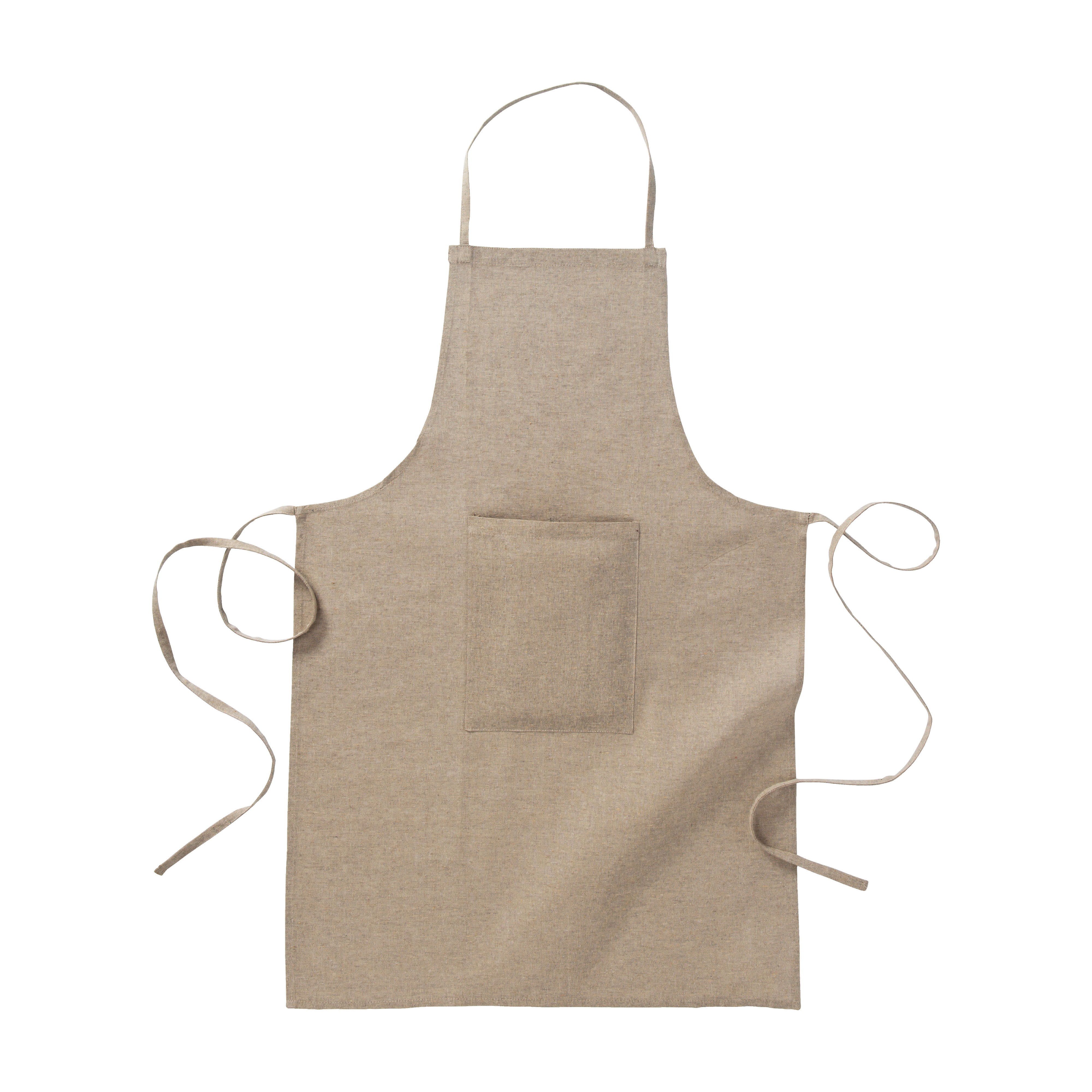 Delantal largo 100% algodón reciclado, con bolsillo delantero