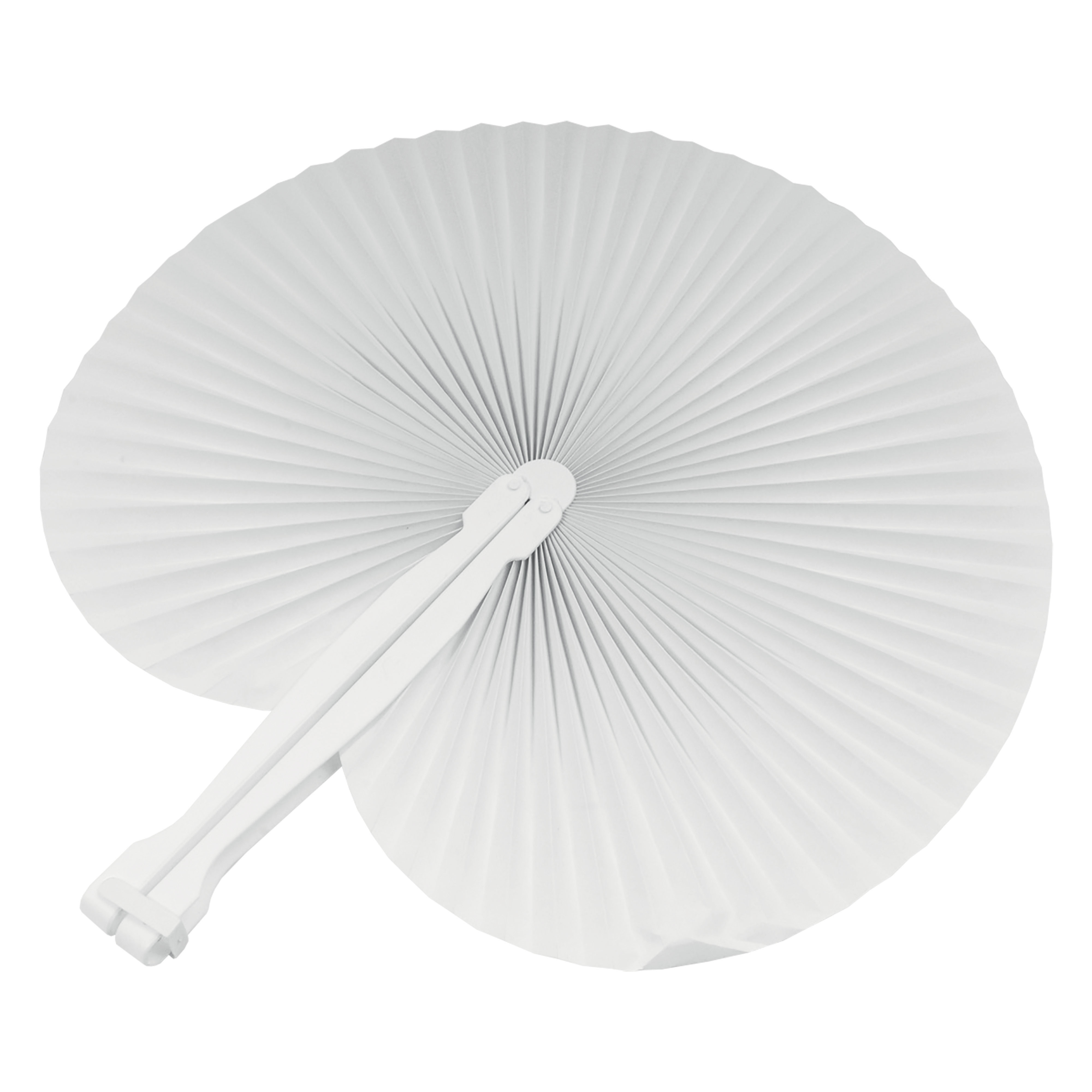 Abanico de papel con mango de plástico. Medida abierta Ø 24cm.