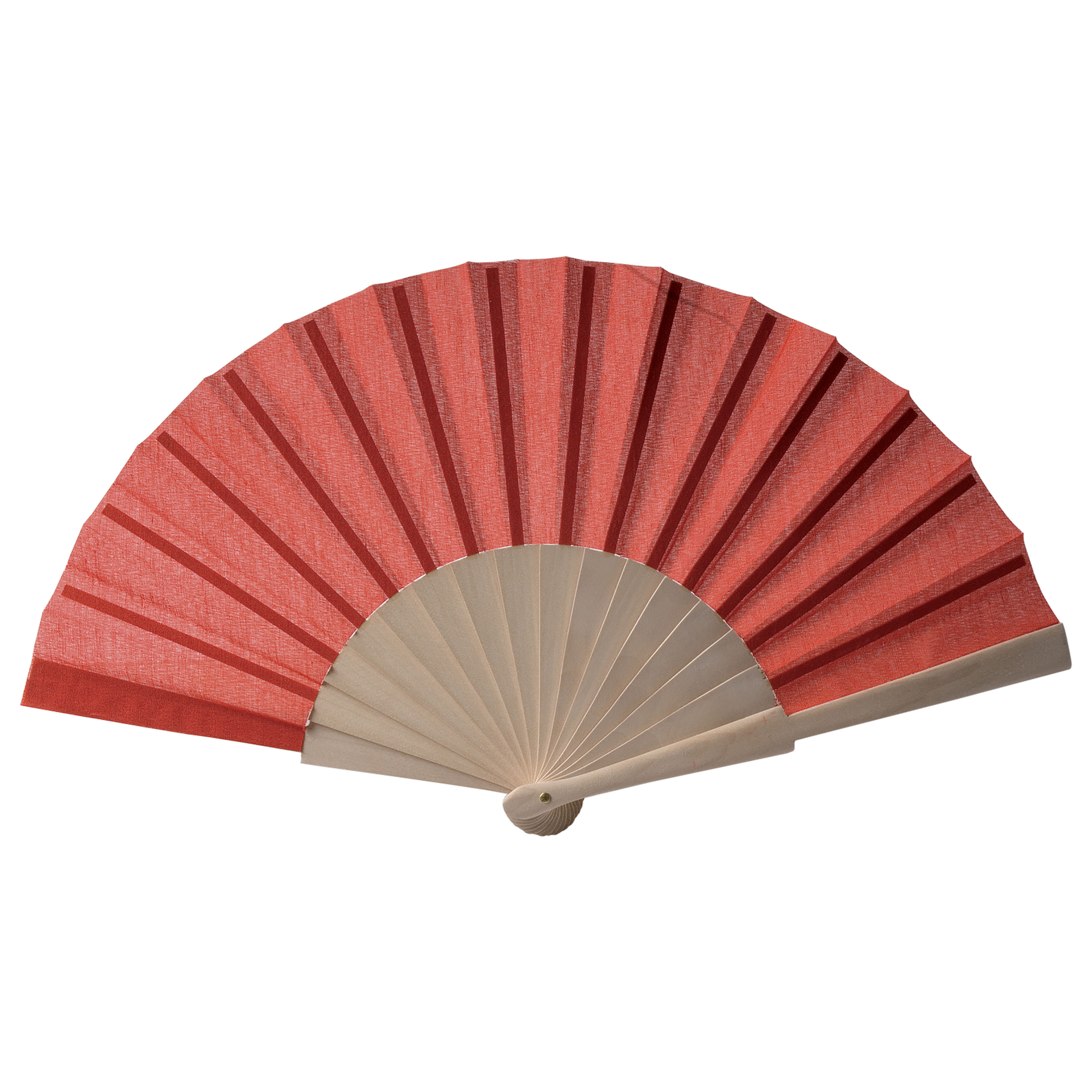Abanico de tejido de policotón (algodón + poliéster) con mango de madera. Medida abierta 23 cm