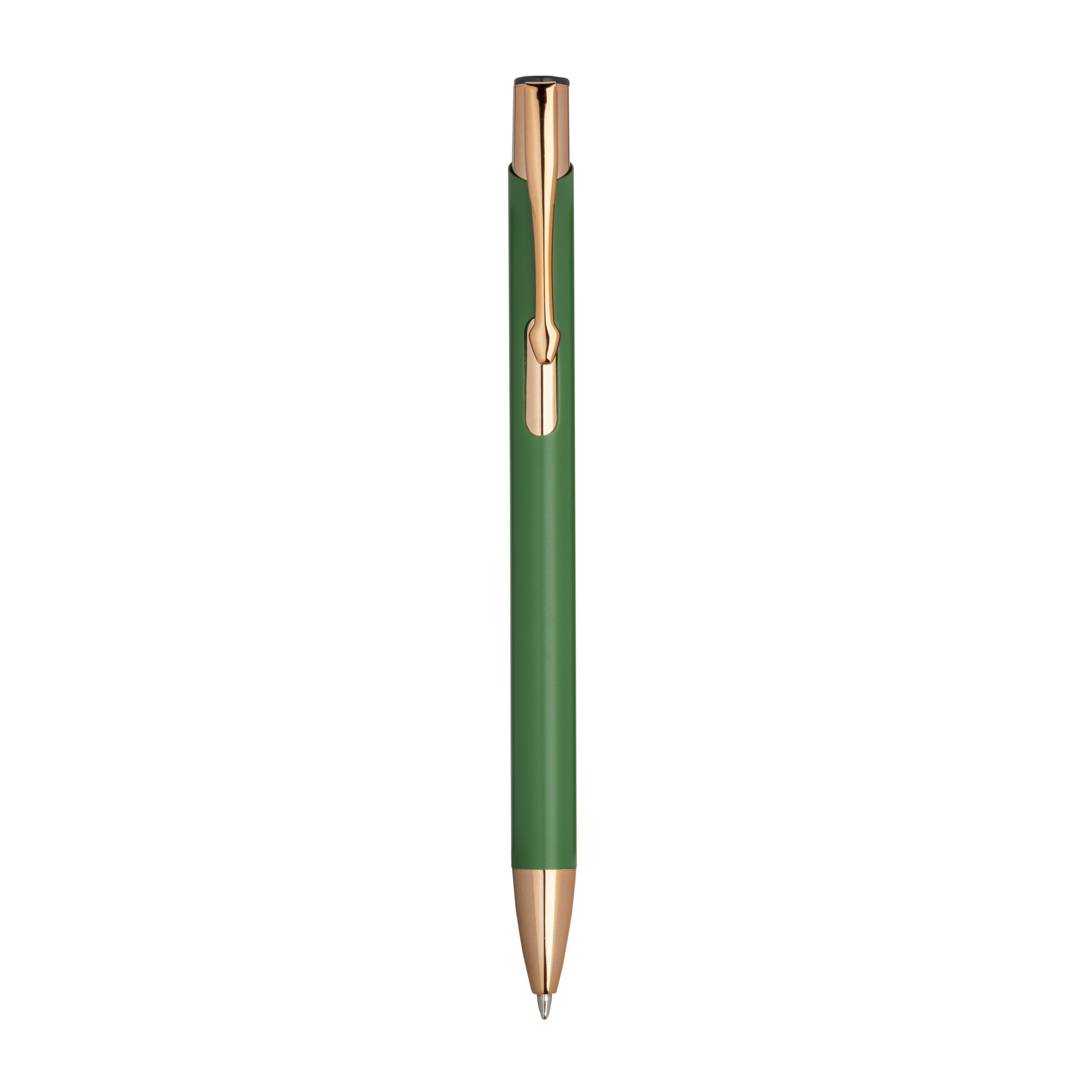 Biros de aluminio con detalles metálicos en tono oro rosa, acabado interior en tono oro rosa a juego con el logotipo láser