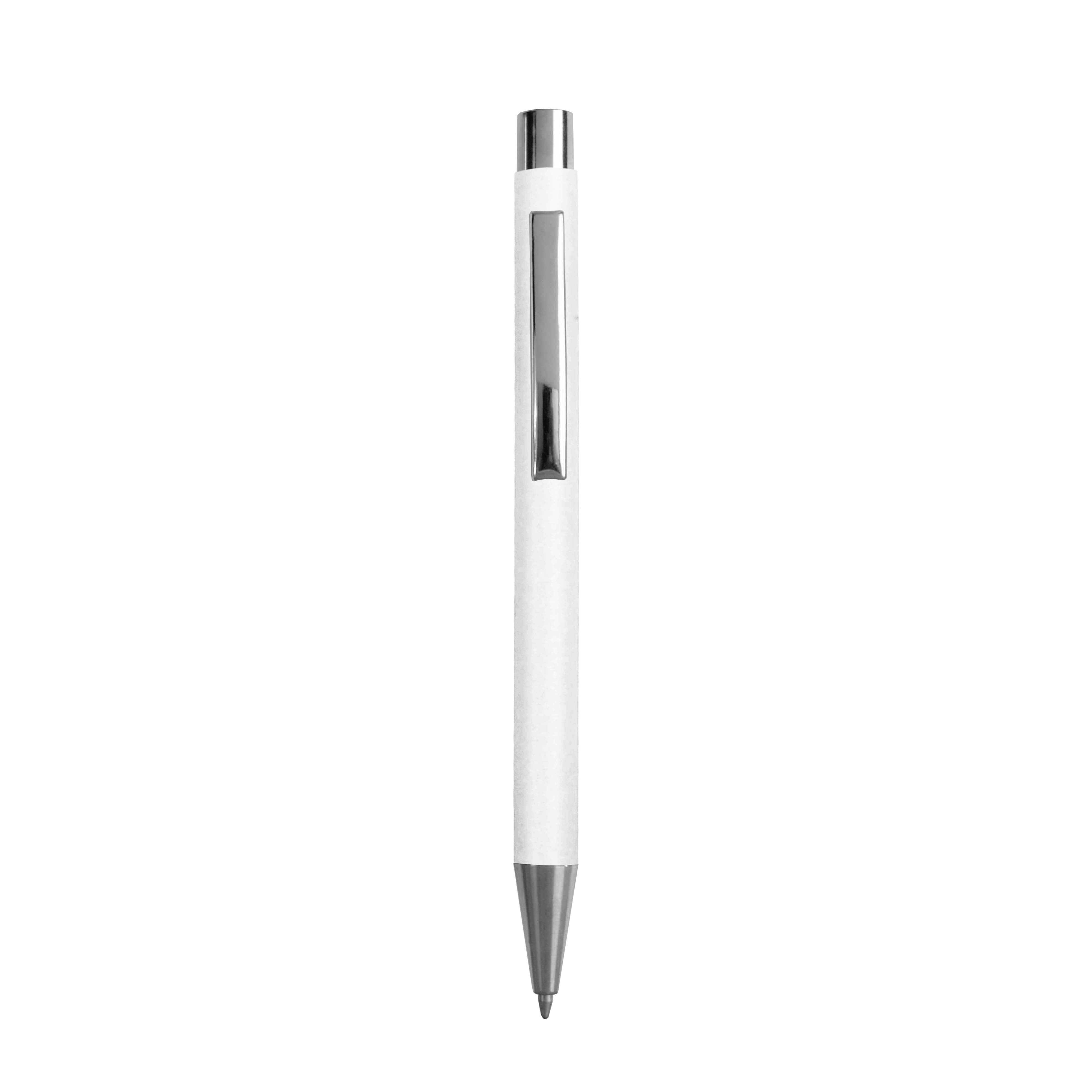 Biros de papel reciclado con detalles cromados y clip metálico