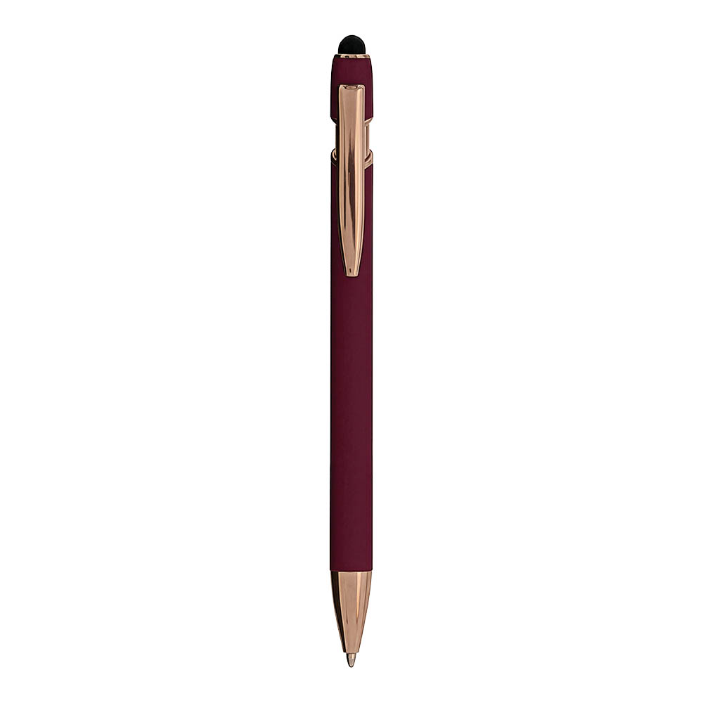 Bolígrafo retráctil de aluminio engomado con goma para pantallas táctiles y clip metálico