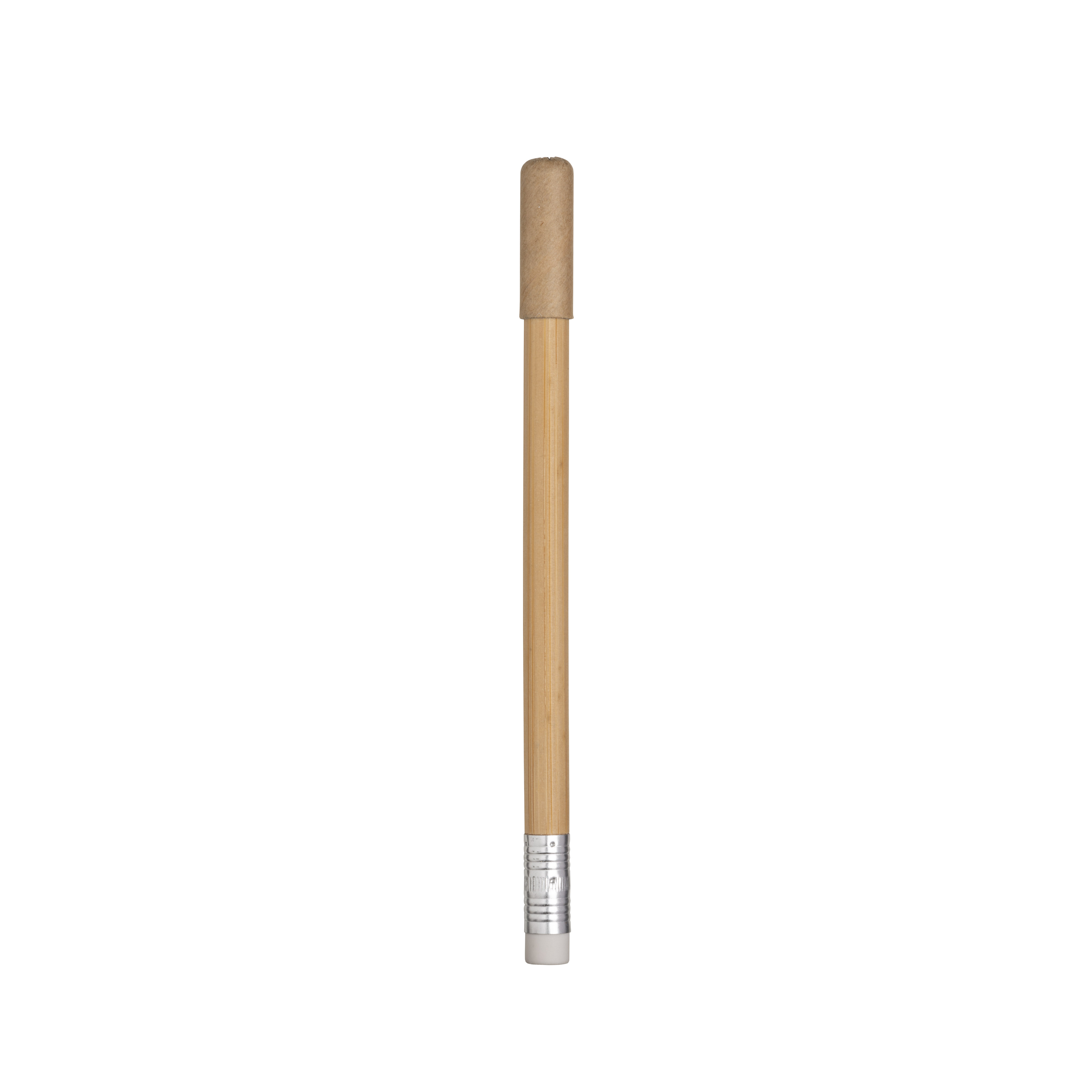 Lápiz hb de bambú de larga duración con sección cilíndrica, tapa de papiel y goma de borrar