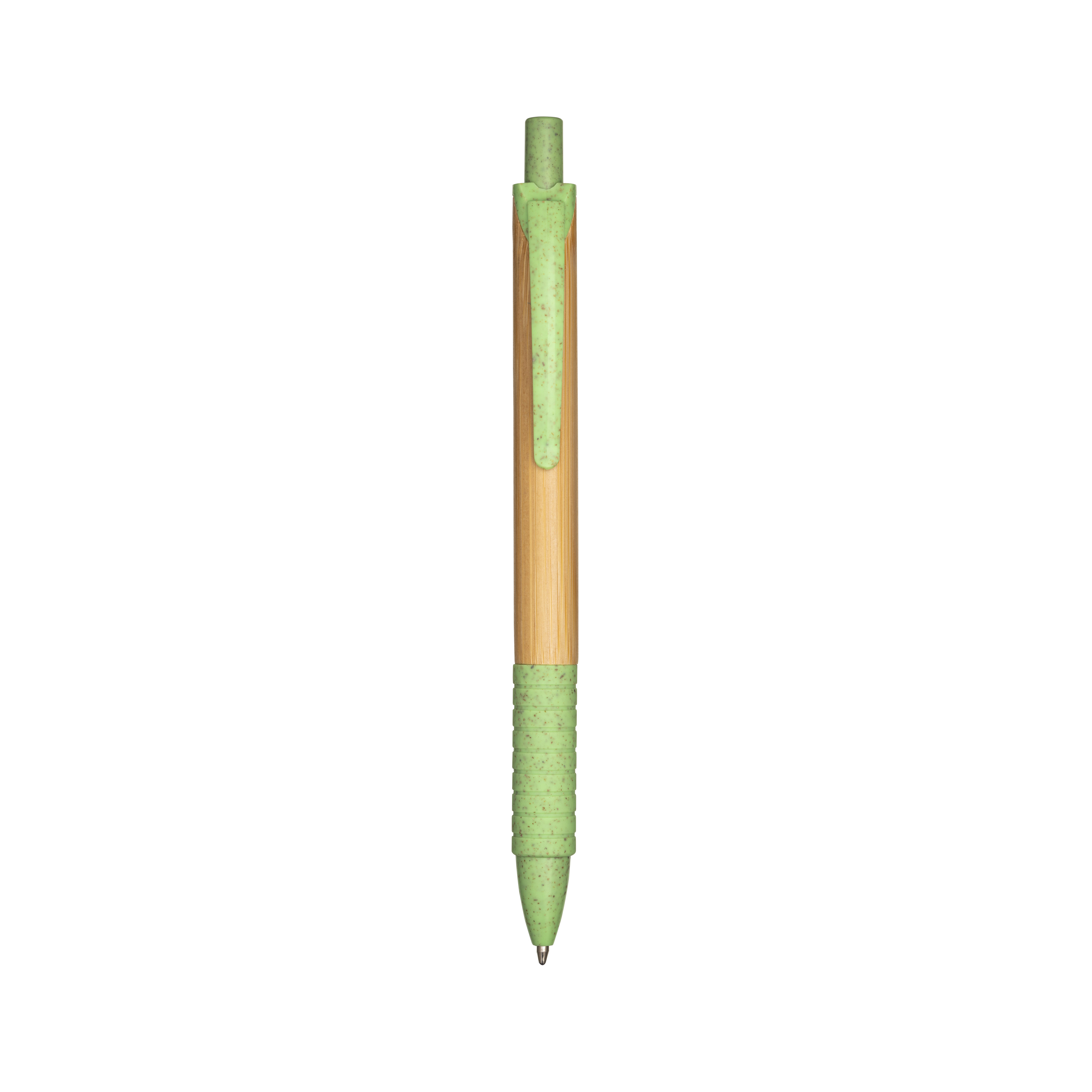 Bolígrafo de acción rápida con cuerpo de bambú, clip de PP y empuñadura de paja de trigo