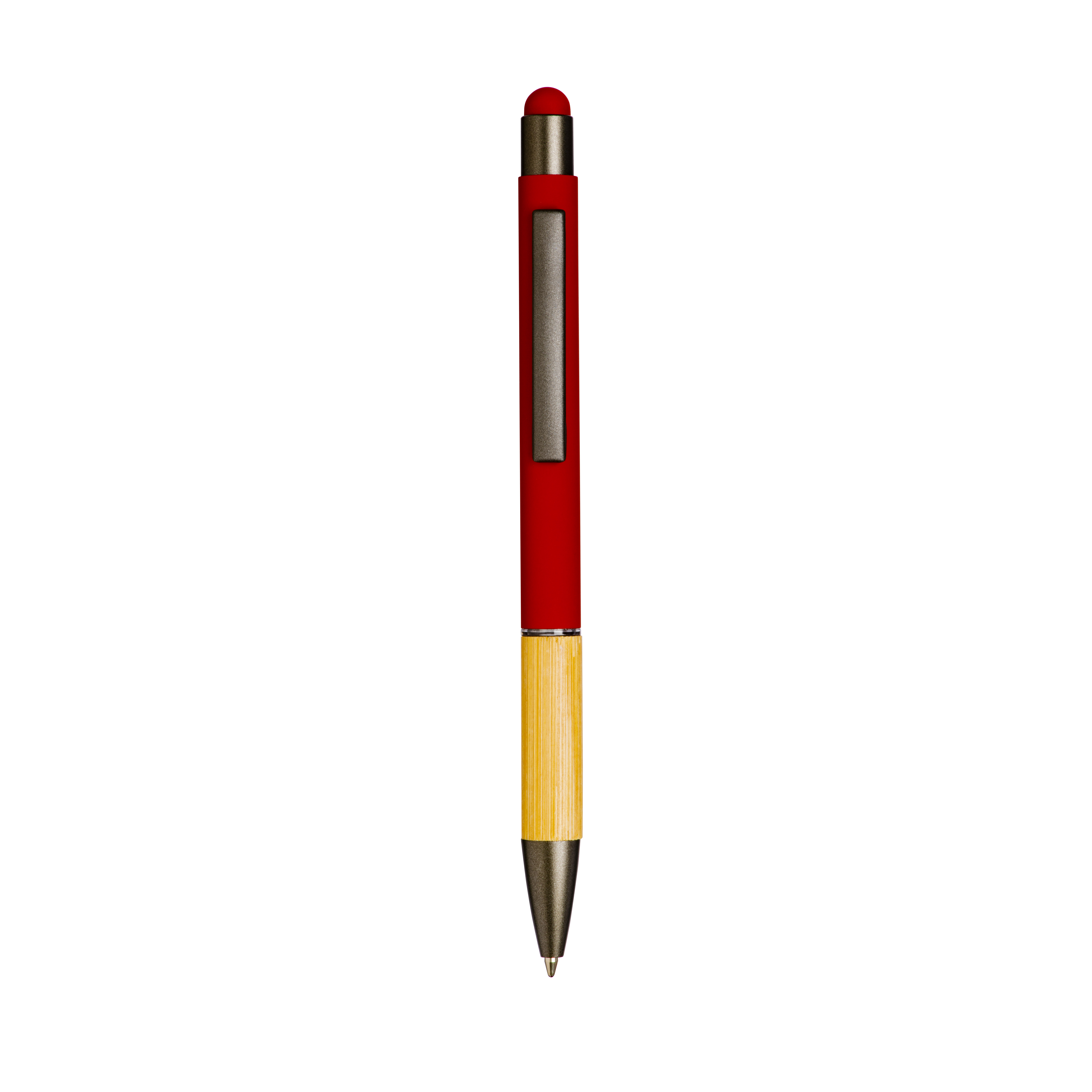 | Bolígrafo de aluminio a presión con mango de bambú : Color - Rojo |
