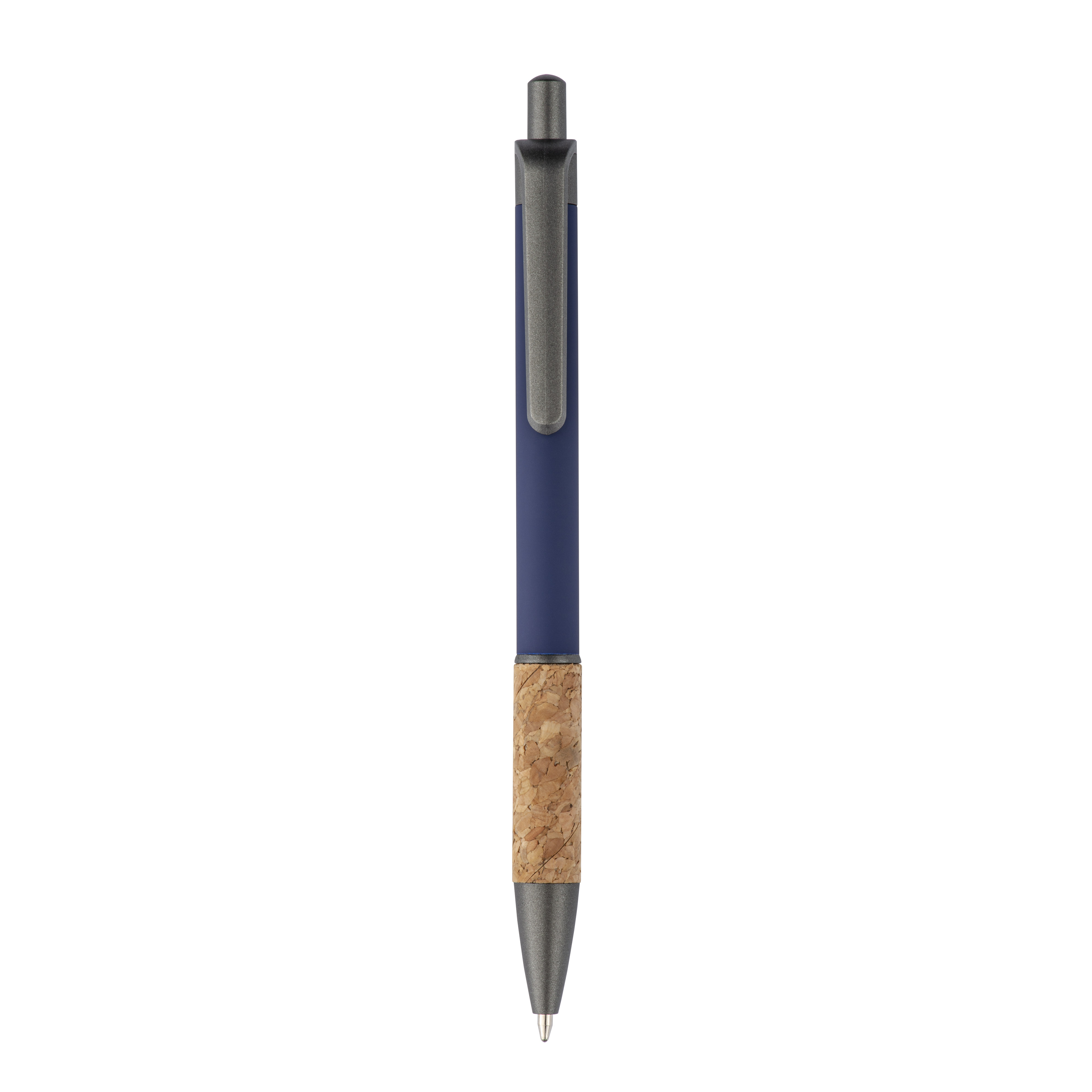 Bolígrafo a presión de aluminio engomado, mango de corcho, detalles bruñidos