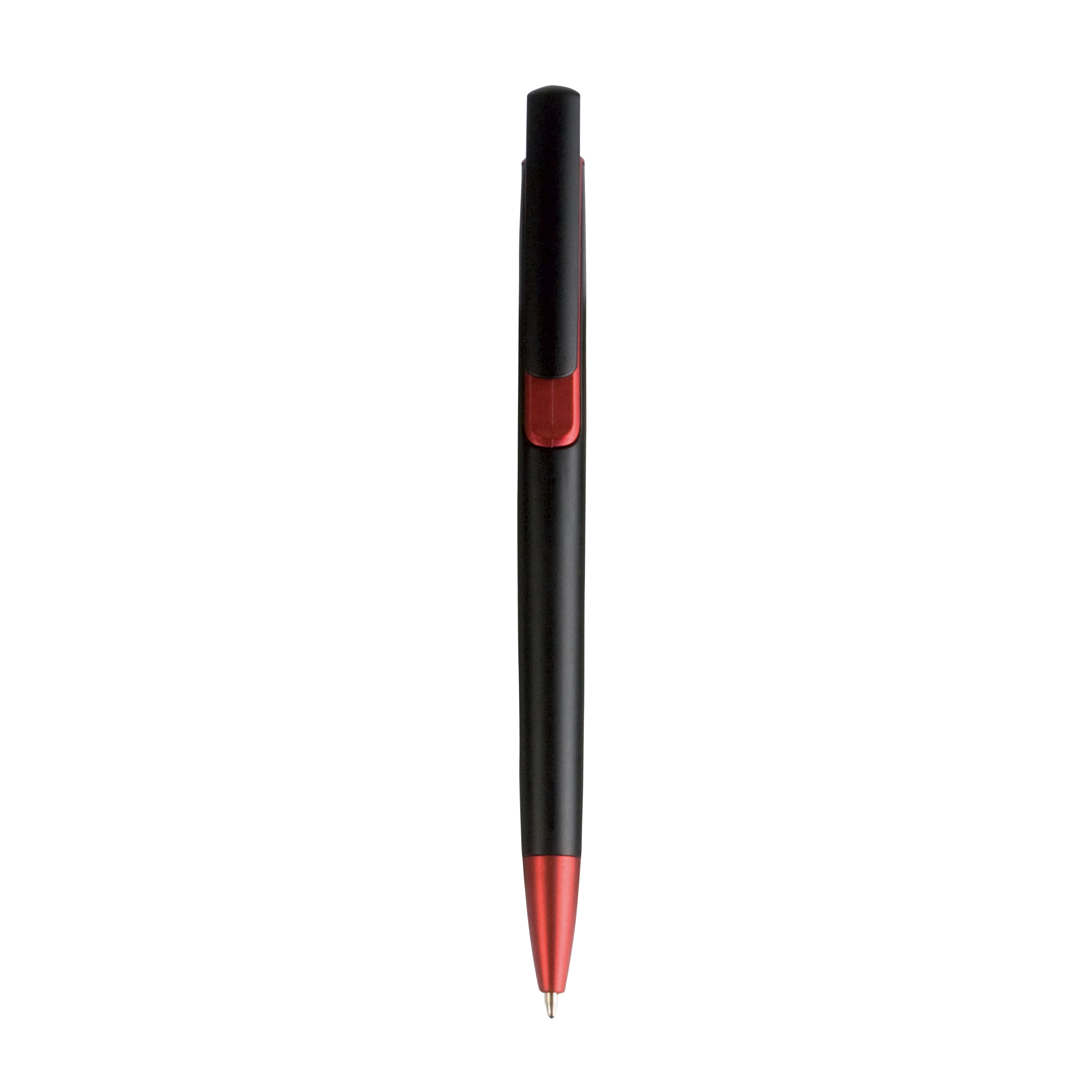 Bolígrafo de plástico con mecanismo de pulsación. Escritura negra.