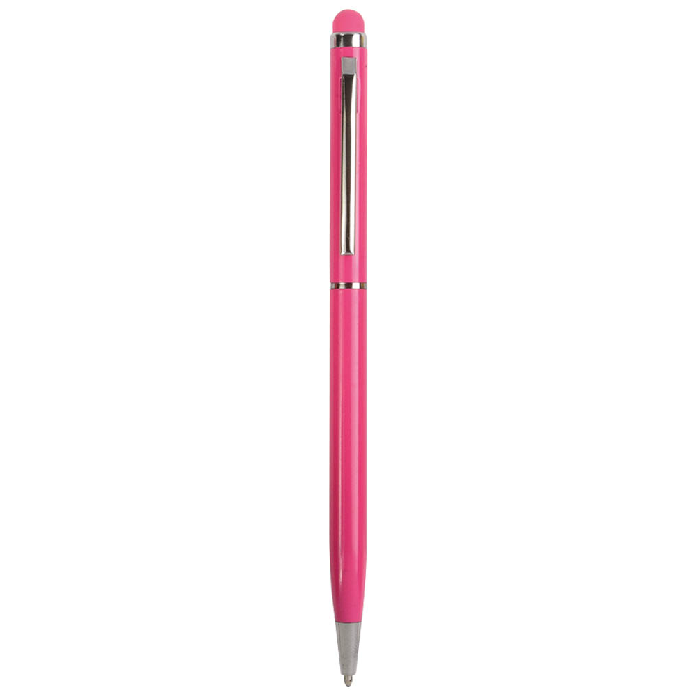 Bolígrafo de metal con mecanismo de giro y puntero para pantallas táctiles. Escritura negra.