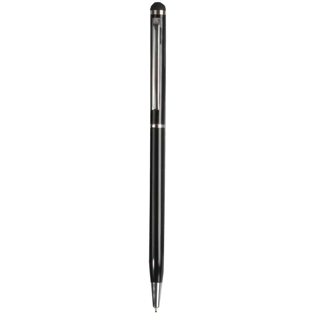 Bolígrafo de metal con mecanismo de giro y puntero para pantallas táctiles. Escritura negra.