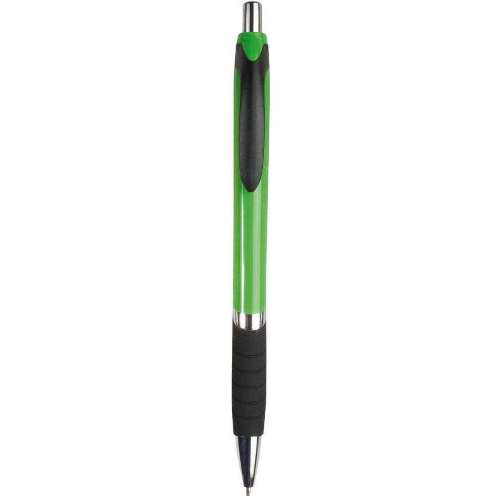 Bolígrafo de plástico con antideslizante de caucho. Escritura negra.
