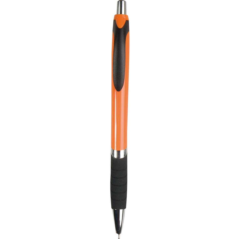 Bolígrafo de plástico con antideslizante de caucho. Escritura negra.