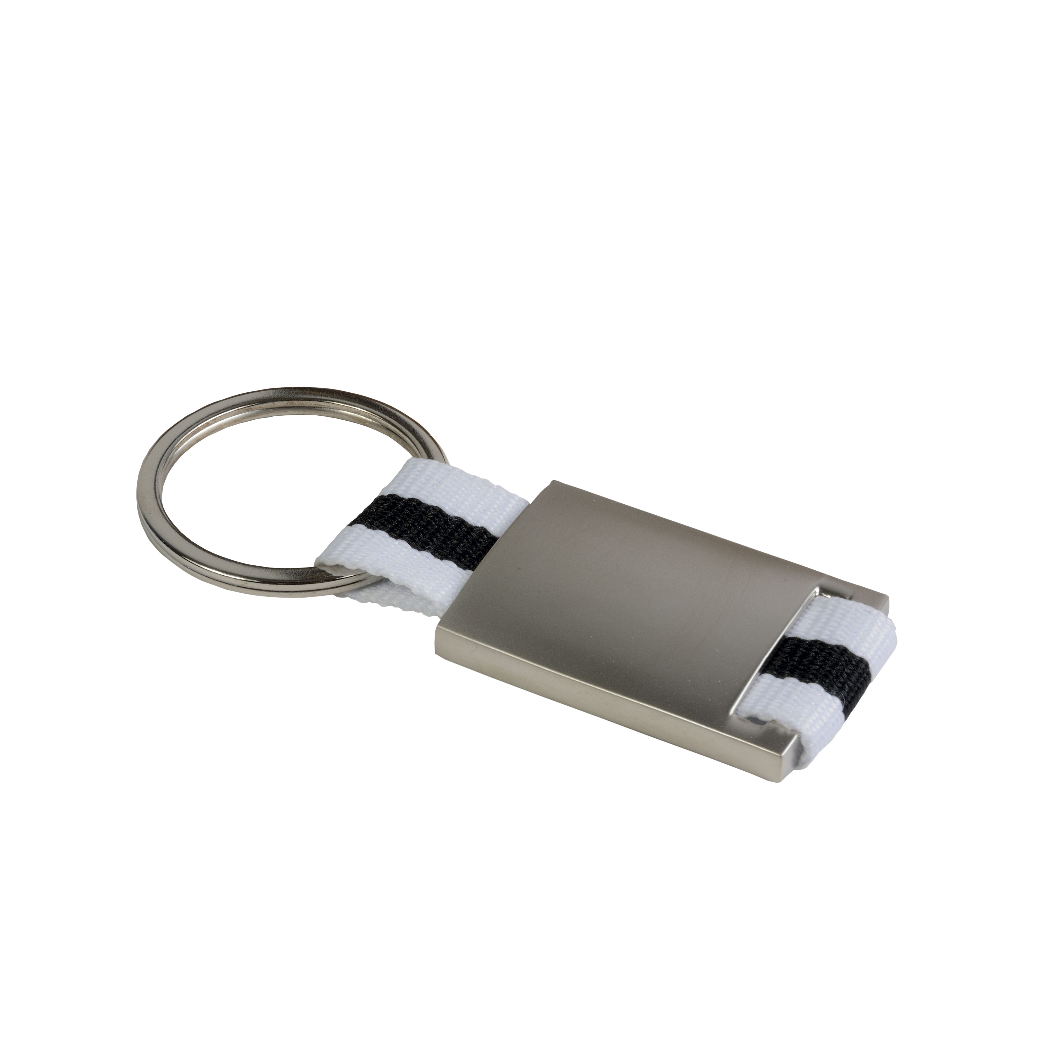 Llavero de metal con tira de nylon presentado en cajita de regalo