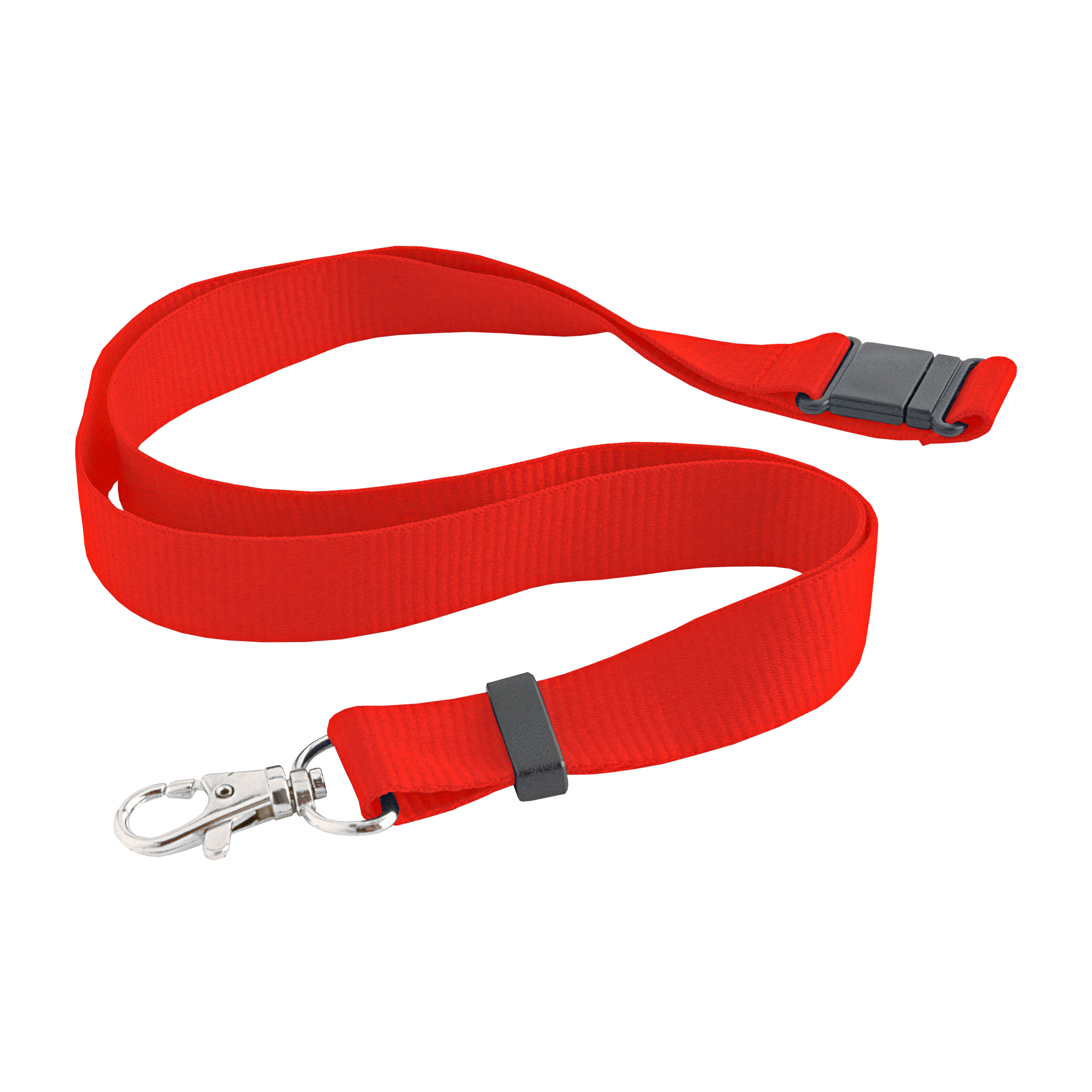 Lanyard de poliéster con apertura de seguridad y mosquetón. Medidas 85 x 2 cm.