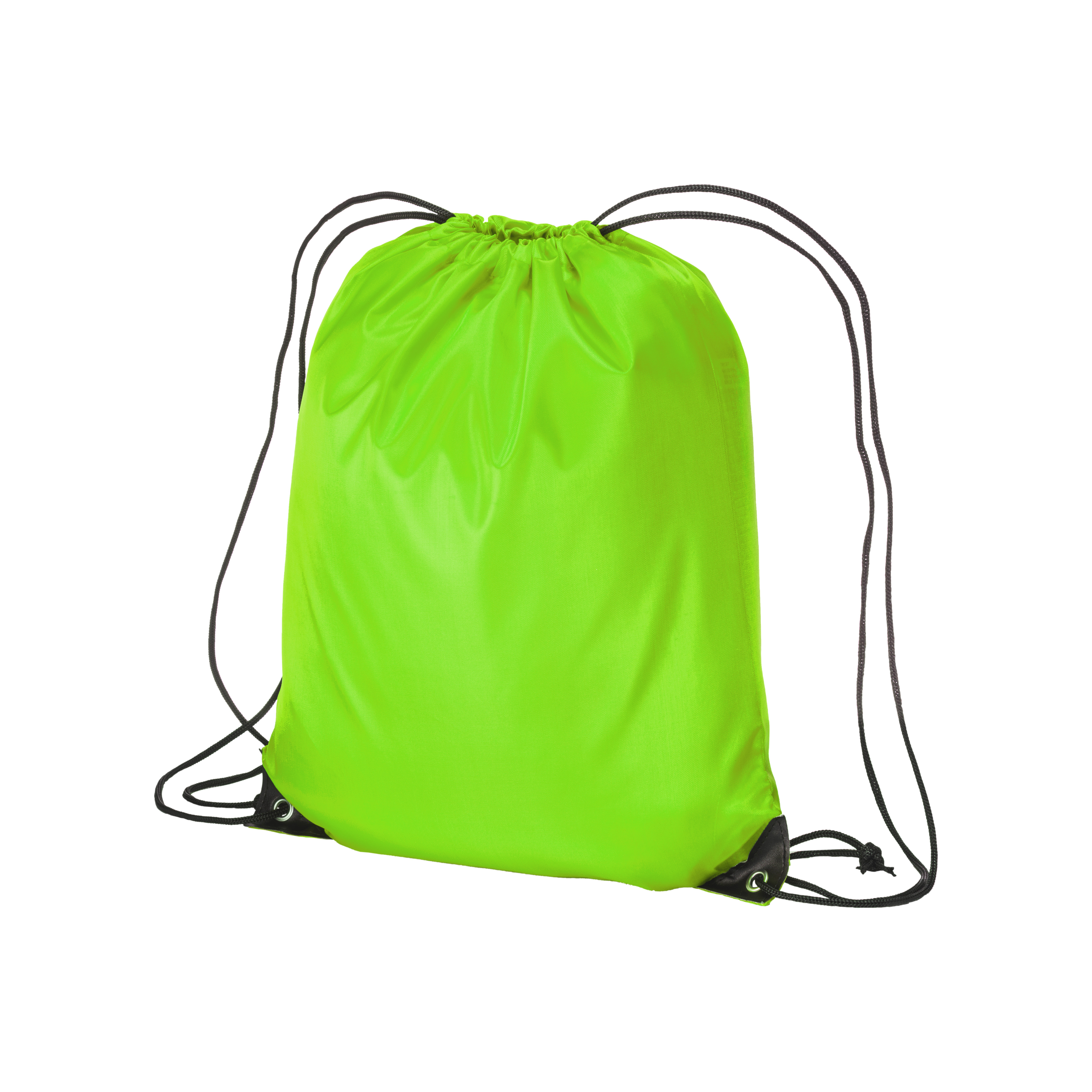 Mochila de color liso fabricada en poliéster 210T. Equipada con esquinas reforzadas, anillas metálicas y cierre de gargantilla con doble cordón negro. Dimensiones de la mochila: 34,5 x 42 cm