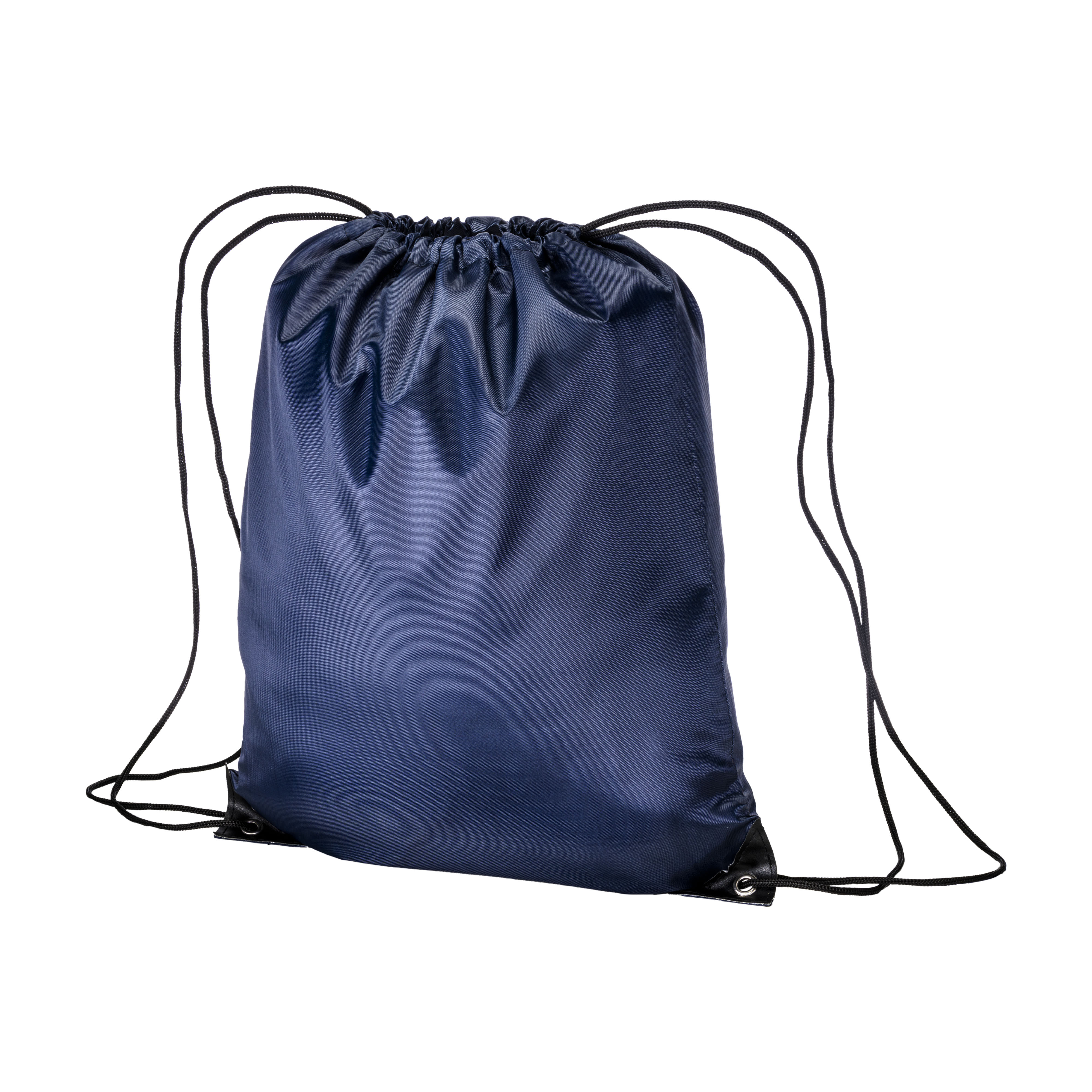 Mochila de color liso fabricada en poliéster 210T. Equipada con esquinas reforzadas, anillas metálicas y cierre de gargantilla con doble cordón negro. Dimensiones de la mochila: 34,5 x 42 cm