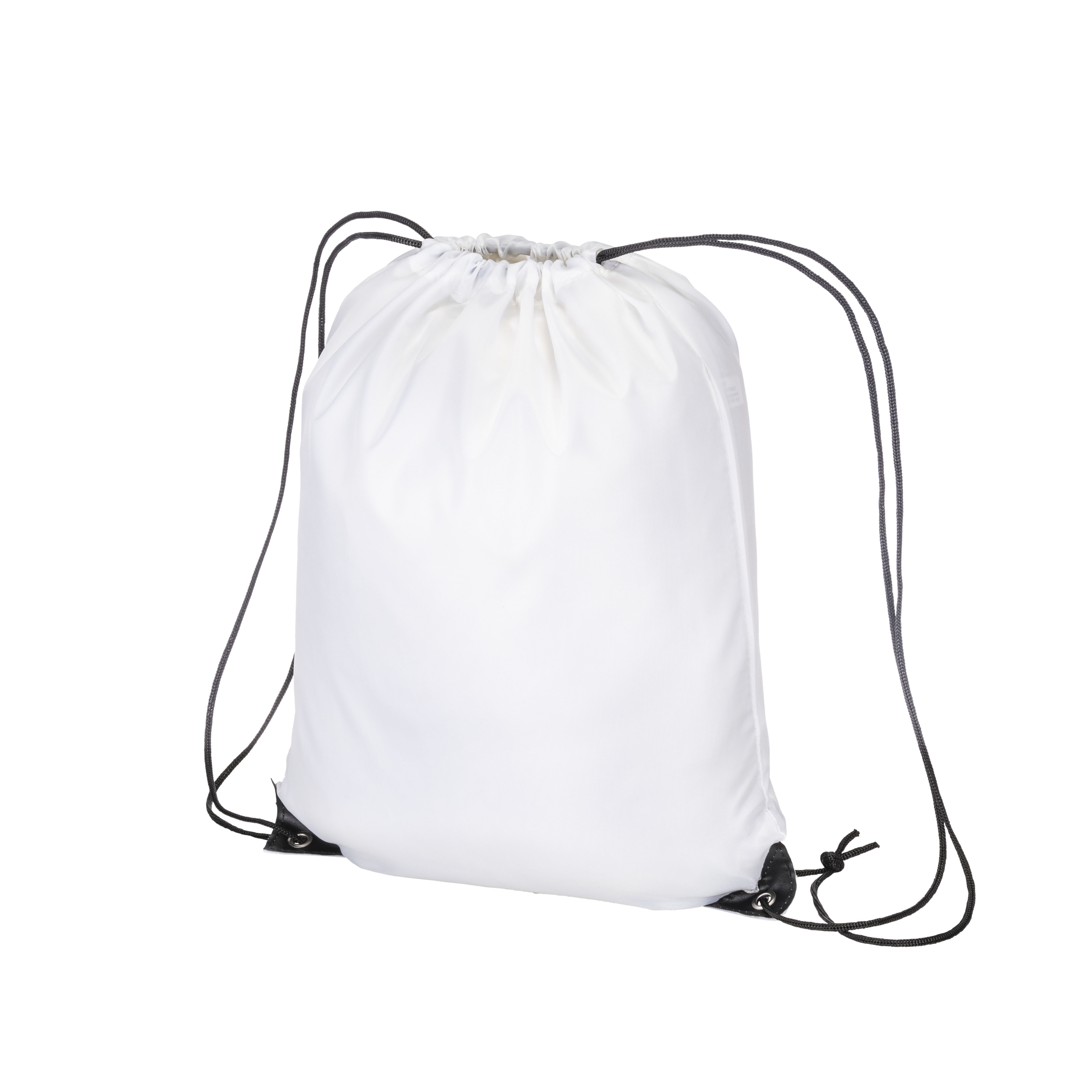 Mochila de color liso fabricada en poliéster 210T. Equipada con esquinas reforzadas, anillas metálicas y cierre de gargantilla con doble cordón negro. Dimensiones de la mochila: 34,5 x 42 cm