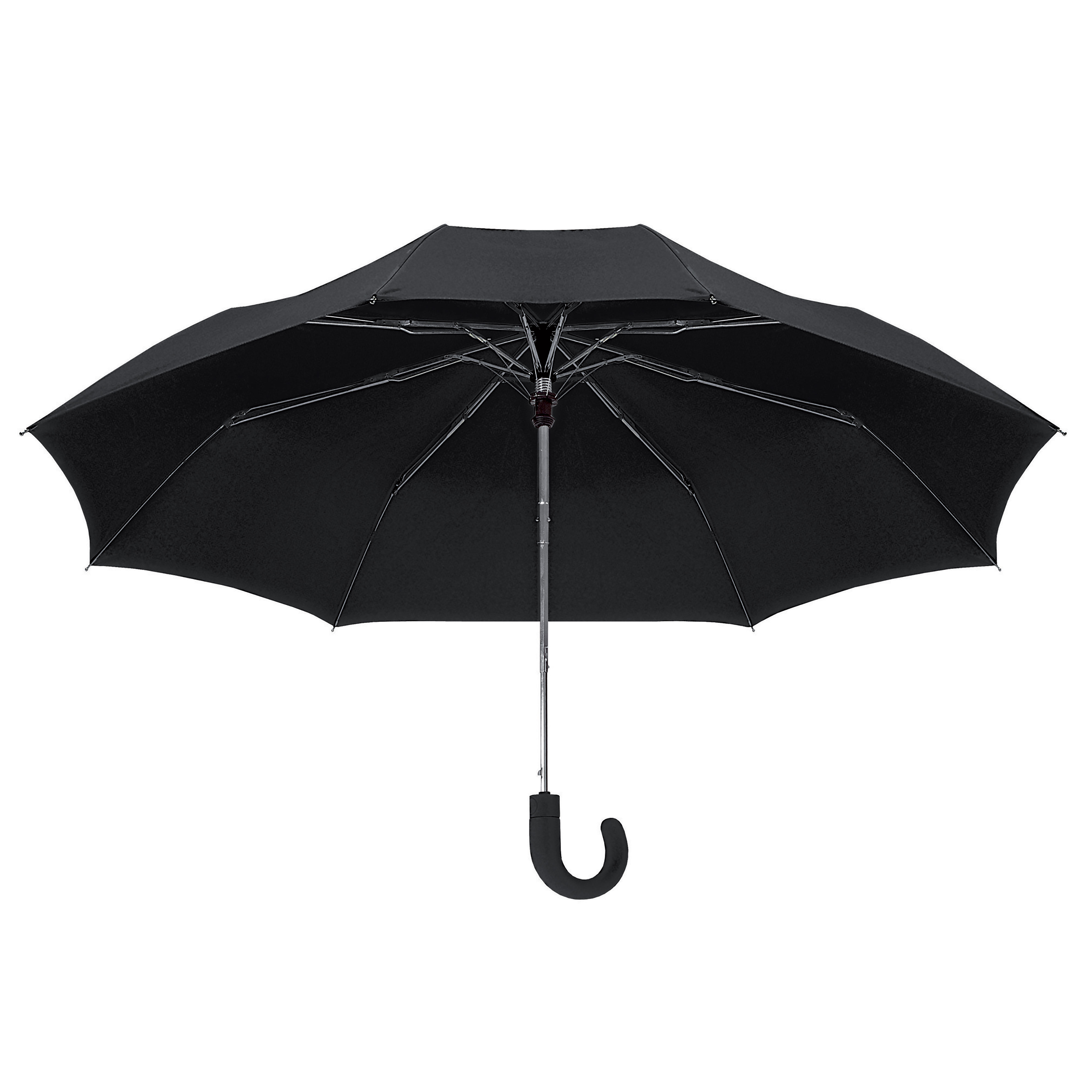 Paraguas plegable con apertura automática en poliéster 190T, funda a juego incluida. Mango curvado con recubrimiento de goma. Estructura y varilla de metal