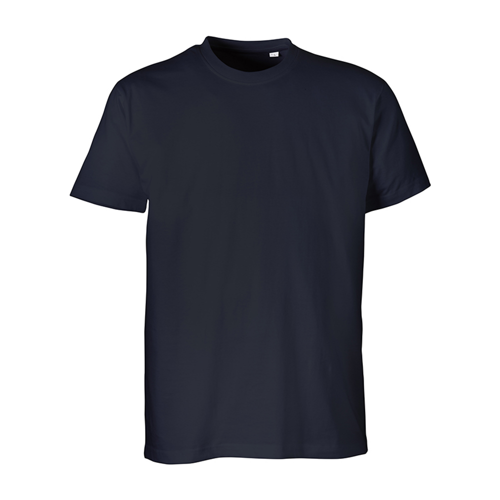 100% algodón orgánico de punto simple hilado en anillos. Camiseta unisex de manga corta, cuello de canalé de doble capa con costuras dobles, cinta de refuerzo en el cuello, estructura con costuras laterales. 145 g/m2