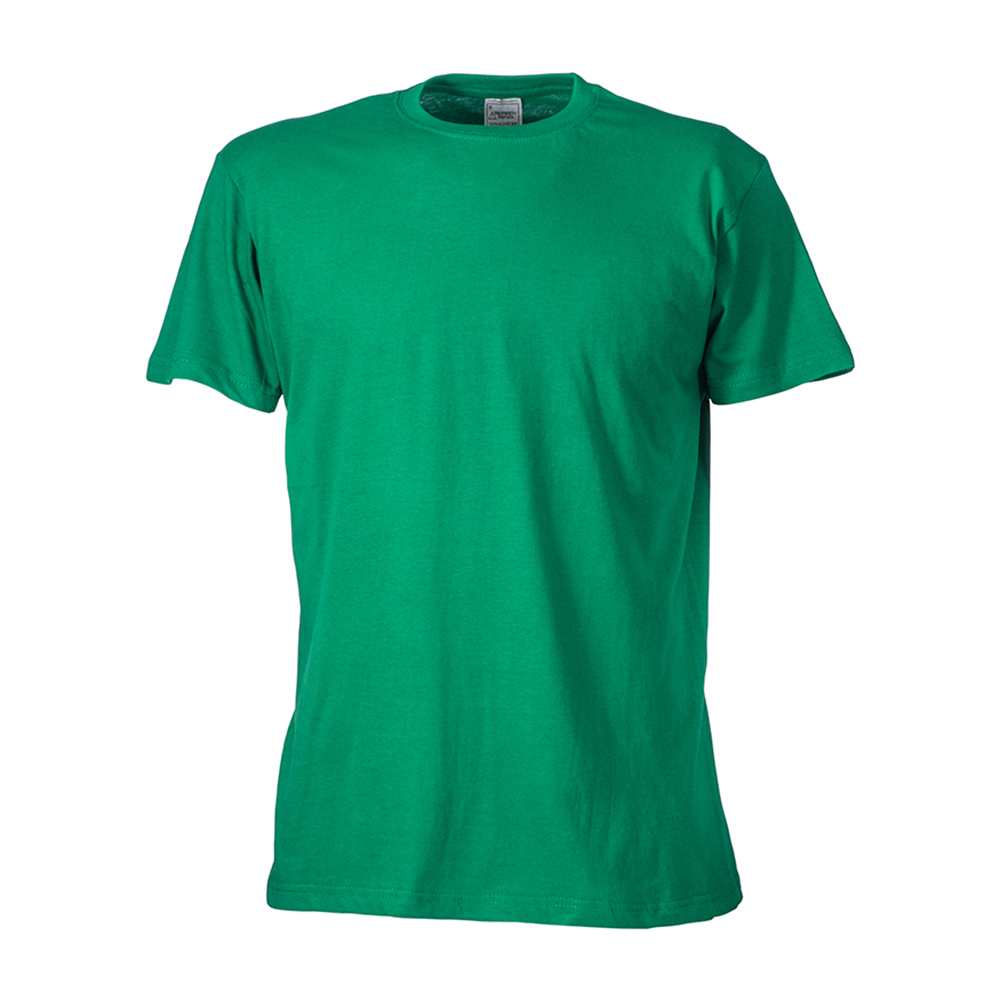Jersey sencillo 100 % algodón hilado en anillos. Camiseta tubular unisex de manga corta, cuello acanalado de doble capa con doble costura y cinta de cuello reforzada, 145 g/m2