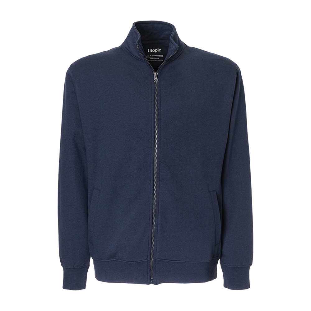 Sudadera unisex con cremallera en tejido 100% regenerado de 280 g/m2 (60% algodón reciclado y 40% poliéster reciclado). Interior afelpado, dos bolsillos delanteros, cuello, puños y bajo de canalé, estructura con costuras laterales
