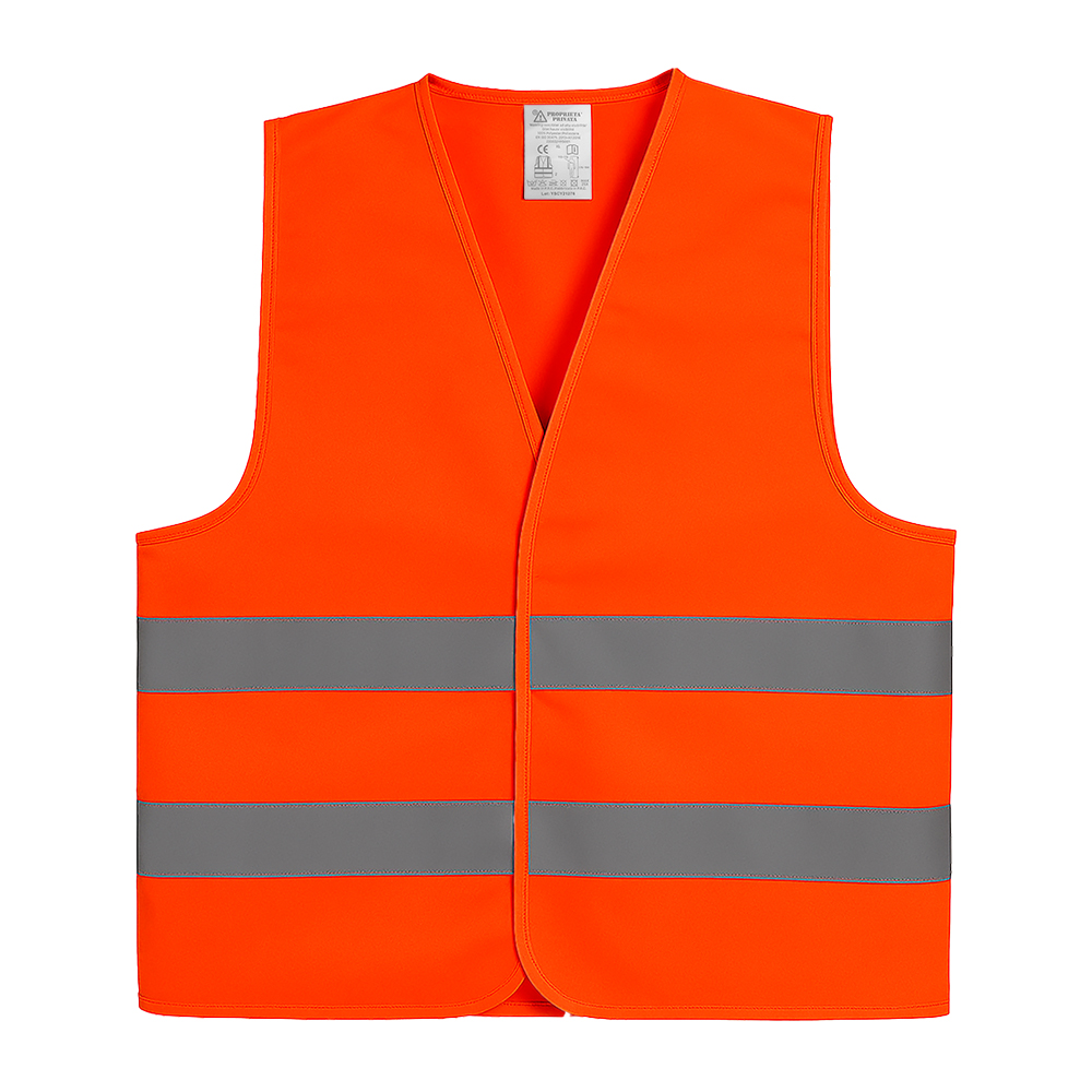 • Chaleco de alta visibilidad en poliéster fluorescente con bandas reflectantes
